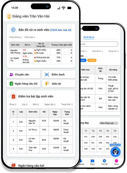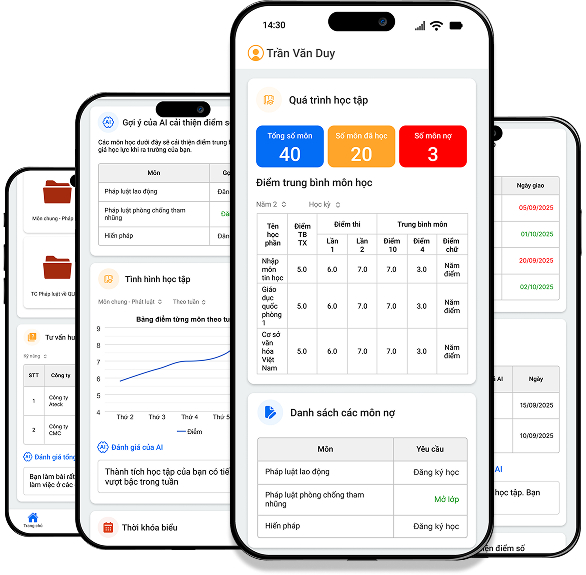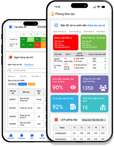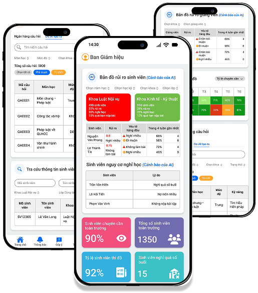 • Theo dõi kết quả học tập, nhận cảnh báo sớm và đồng hành cùng sinh viên theo thời gian thực.