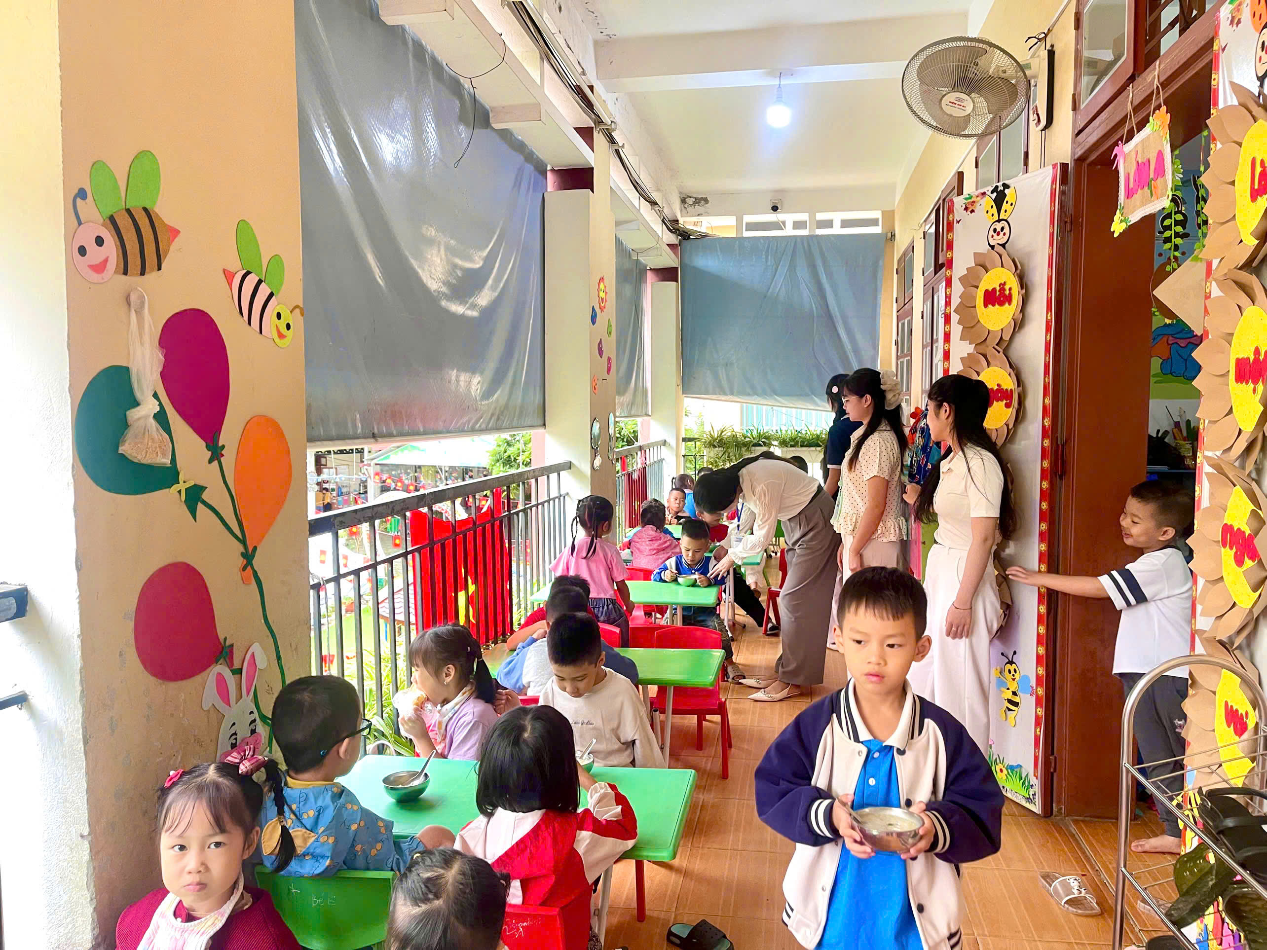 Các sinh viên tham gia các hoạt động với trẻ tại Trường Mầm non Chiềng Sinh