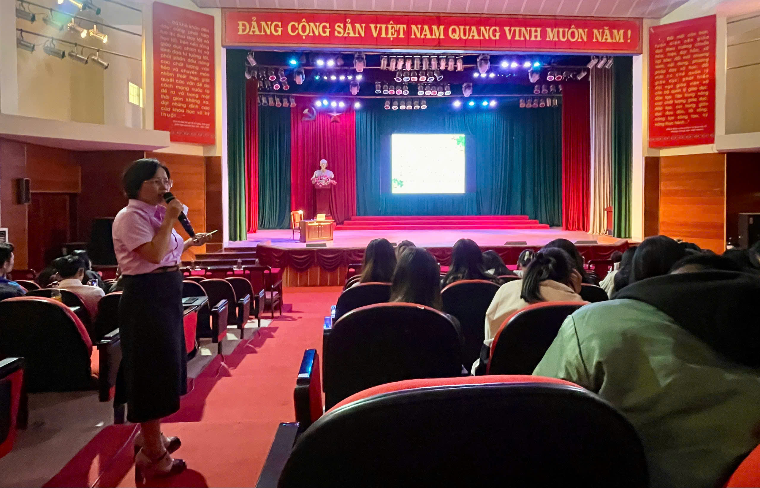 Đồng chí Vàng Quỳnh Thu Huế trình bày nội dung truyền thông, giáo dục sức khoẻ học đường