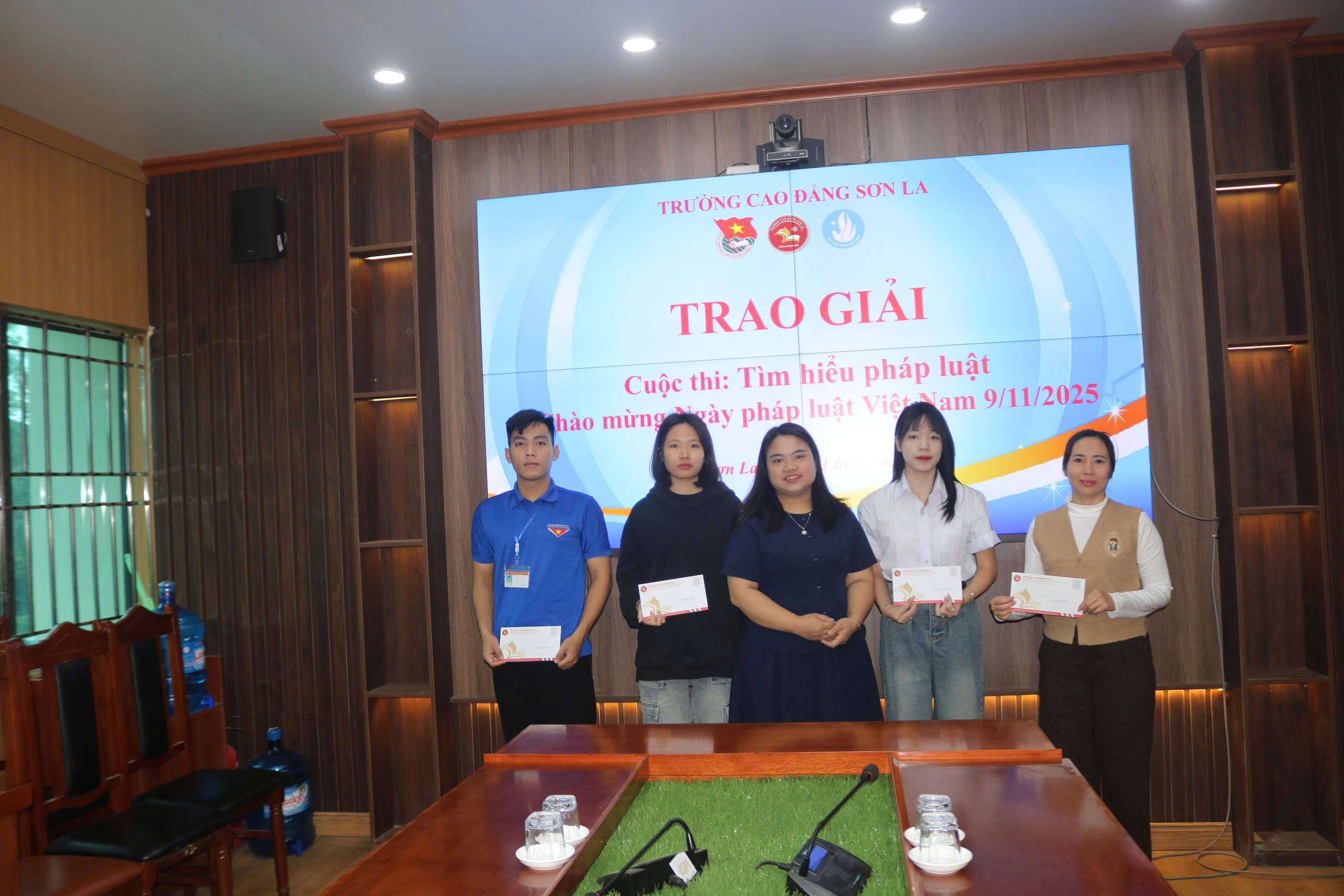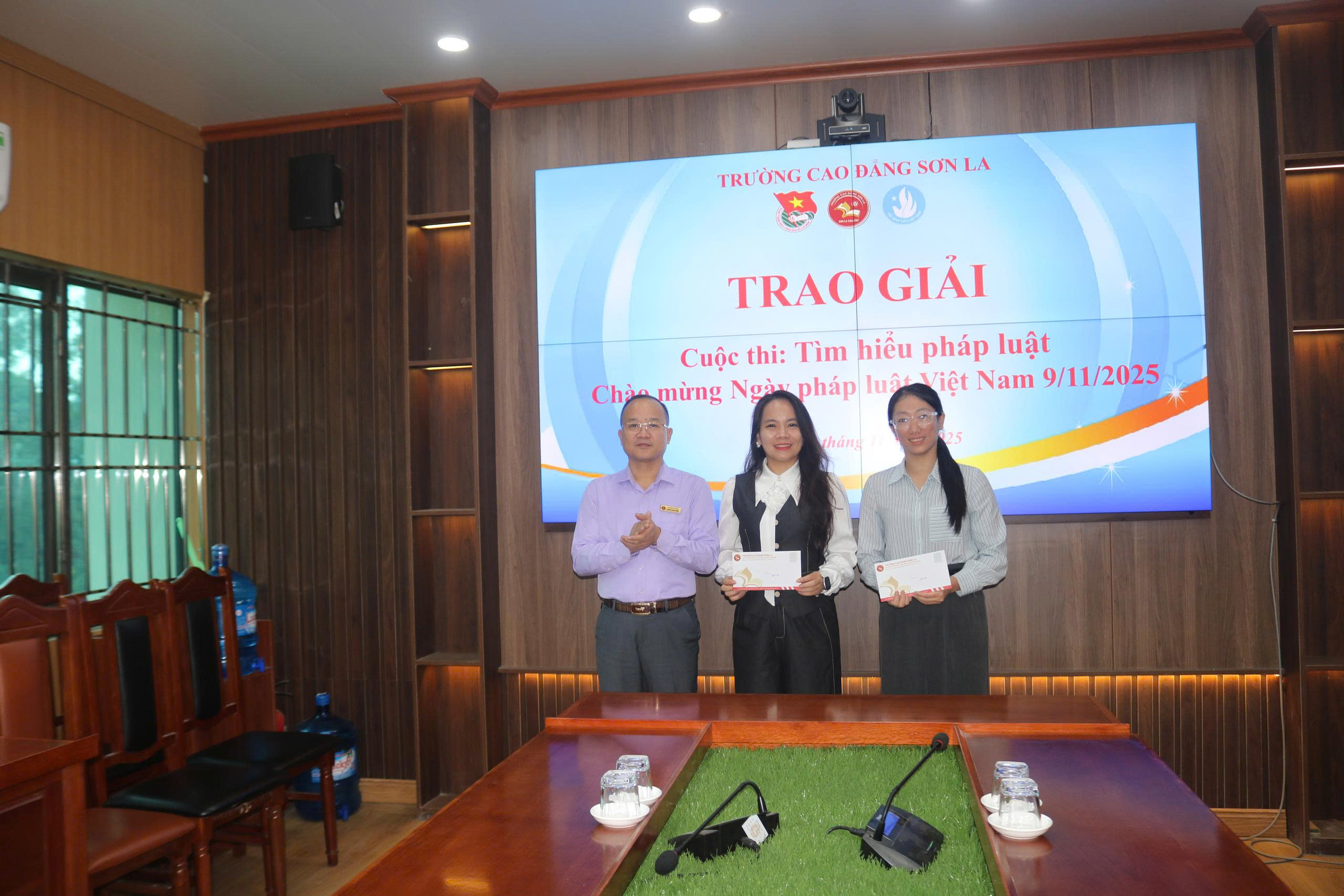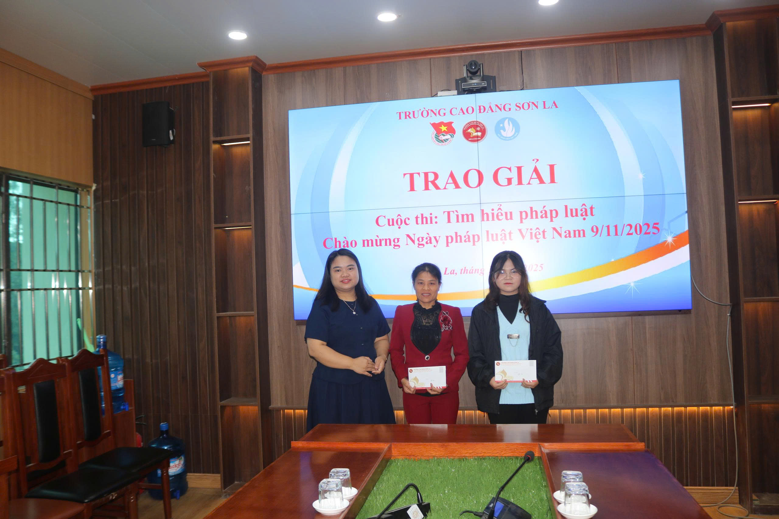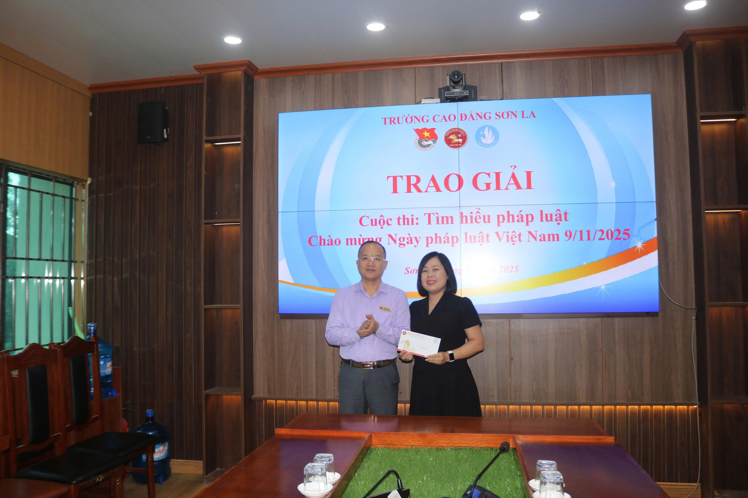 Thực hiện Kế hoạch số 328/KH-CĐSL ngày 08/10/2025 của Trường Cao đẳng Sơn La về việc tổ chức hưởng ứng Ngày Pháp luật nước Cộng hòa xã hội chủ nghĩa Việt Nam (09/11) năm 2025, sáng ngày 07/11/2025, tại Phòng họp số 2 – Nhà Hiệu bộ, Trường Cao đẳng Sơn La đã tổ chức Trao giải Cuộc thi viết tìm hiểu Ngày Pháp luật Việt Nam năm 2025.