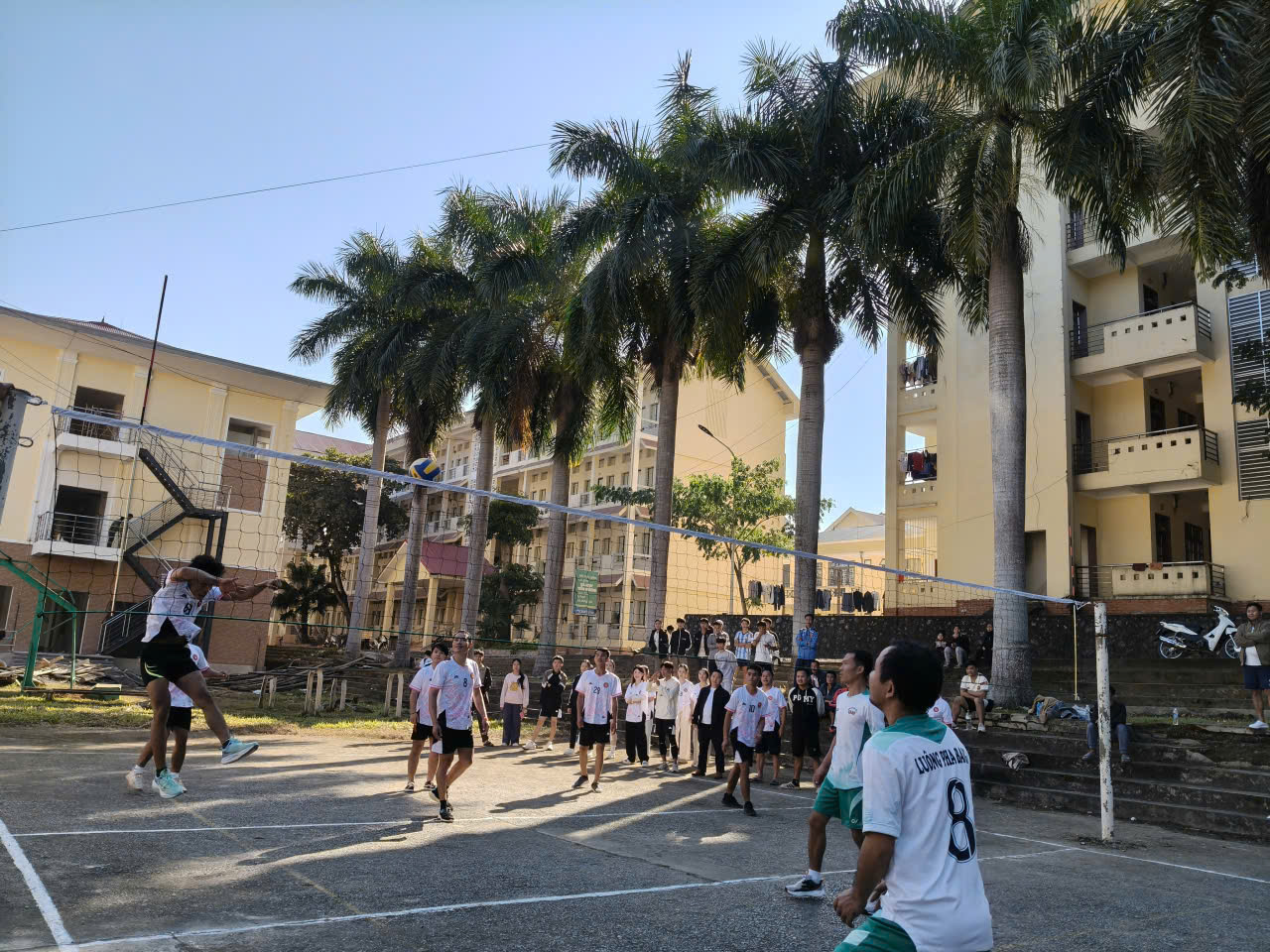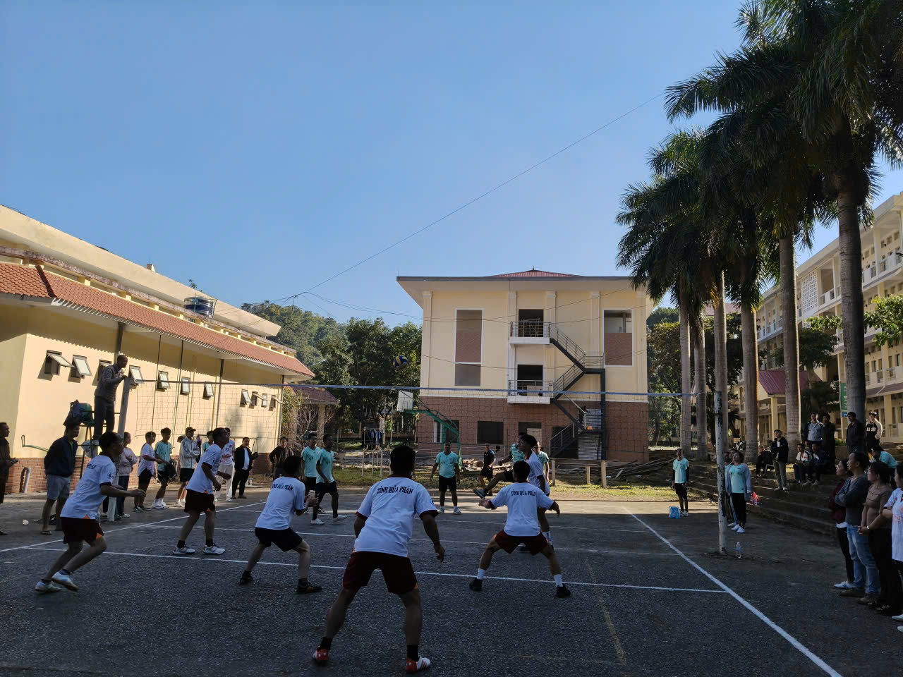 Ngay sau lễ khai mạc ngắn gọn nhưng trang trọng, các trận đấu mở màn ở nội dung Bóng chuyền nam và Bóng chuyền nữ đã chính thức diễn ra trong tiếng hò reo cổ vũ cuồng nhiệt của hàng trăm khán giả là LHS Lào và HSSV nhà trường.