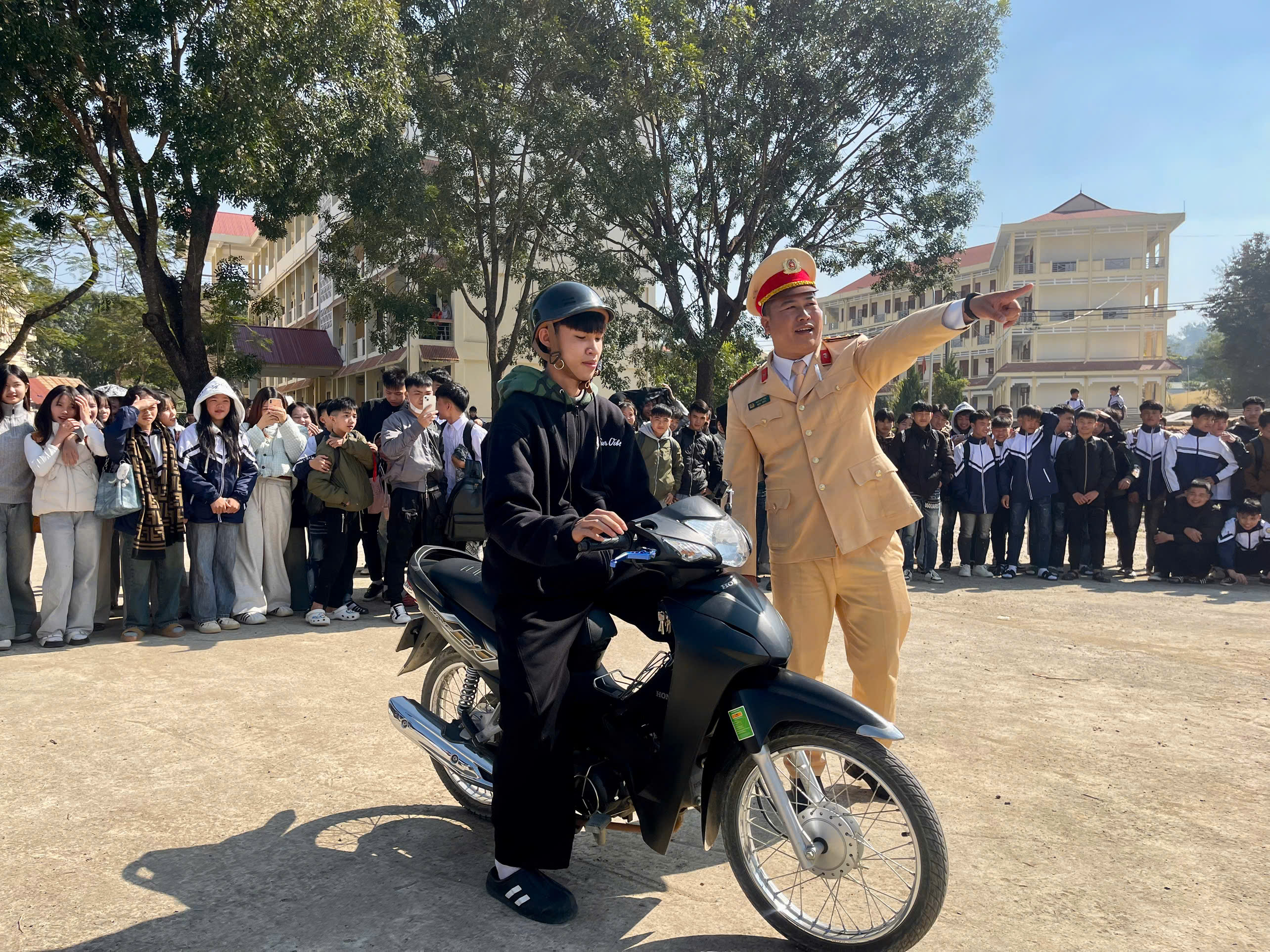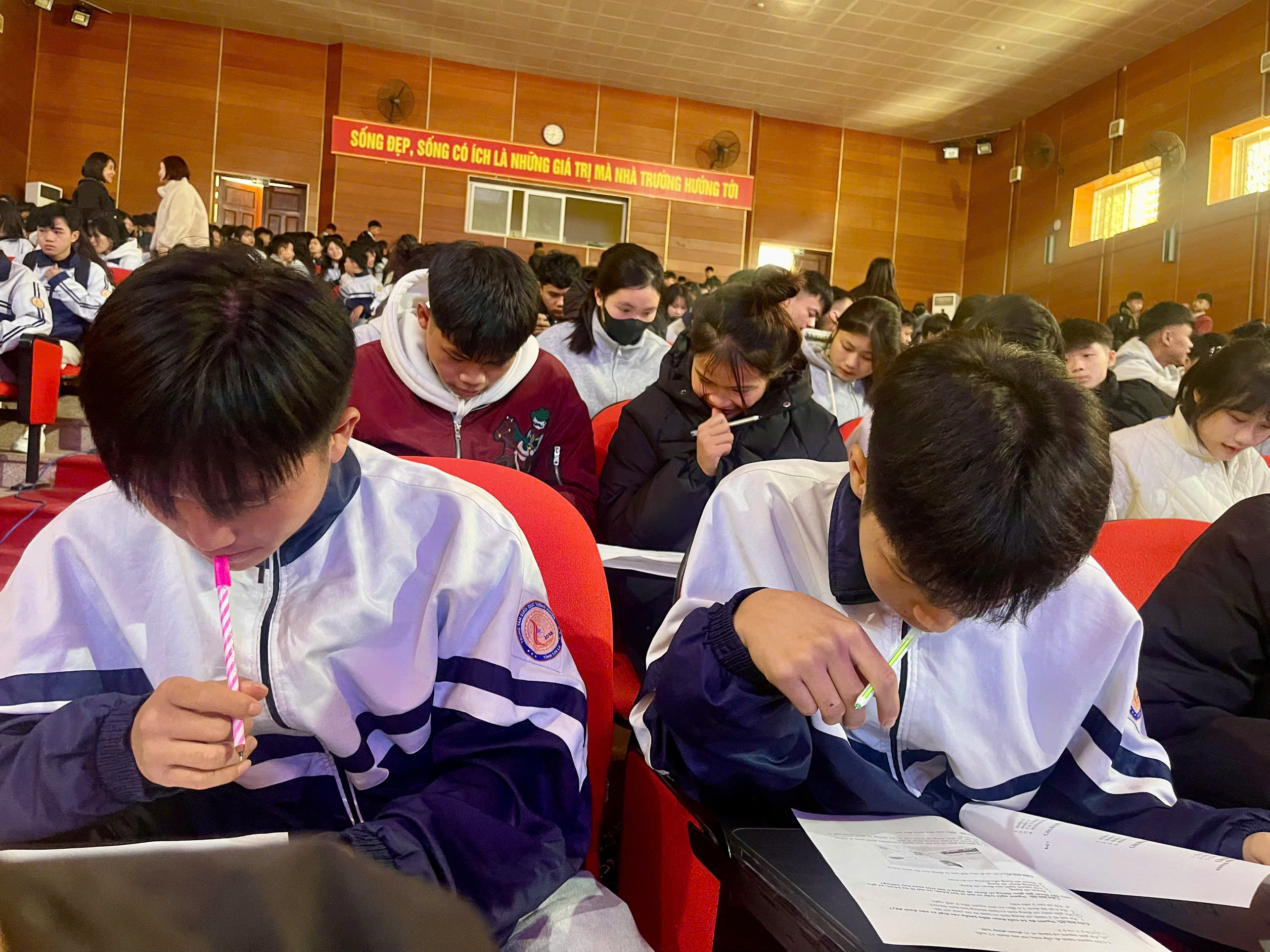 Ngay sau khi phần trình bày lý thuyết của đồng chí Ngô Kim Tiến kết thúc, để củng cố kiến thức và đánh giá mức độ tiếp thu của học sinh, Ban tổ chức đã phát phiếu kiểm tra nhanh dưới hình thức trắc nghiệm. Các em học sinh đã được làm bài gồm 15 câu hỏi trắc nghiệm, nội dung xoay quanh toàn bộ các vấn đề pháp luật về trật tự an toàn giao thông đường bộ đã được phổ biến. Hoạt động này không chỉ giúp các em hệ thống hóa lại những kiến thức trọng tâm mà còn chuẩn bị tốt hơn cho việc tham gia giao thông an toàn trong thực tiễn.