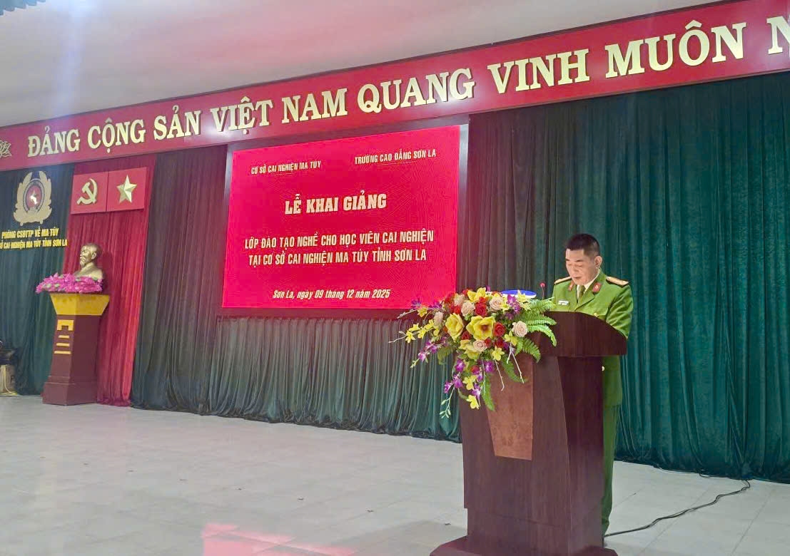 Ngày 09/12/2025, tại Cơ sở cai nghiện ma túy thuộc Phòng Cảnh sát điều tra tội phạm về ma túy, Công an tỉnh, Trường Cao đẳng Sơn La đã phối hợp với Cơ sở cai nghiện ma túy tổ chức Lễ khai giảng lớp nghề Kỹ thuật nuôi và phòng, trị bệnh cho gia súc và nghề Kỹ thuật trồng, chăm sóc, thu hoạch và sơ chế cà phê dành cho người đang thực hiện cai nghiện tại Cơ sở cai nghiện ma túy khóa K1.25.