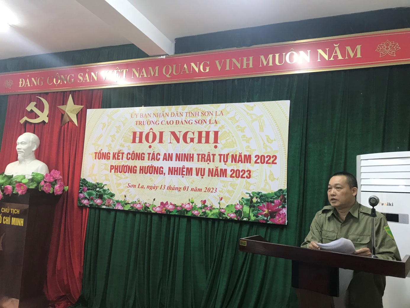 Thực hiện kế hoạch năm học 2022 - 2023, ngày 13/01/2023, Trường Cao Đẳng Sơn La tổ chức Hội nghị tổng kết công tác an ninh trật tự năm 2022 và triển khai phương hướng nhiệm vụ đảm bảo an ninh trật tự năm 2023.