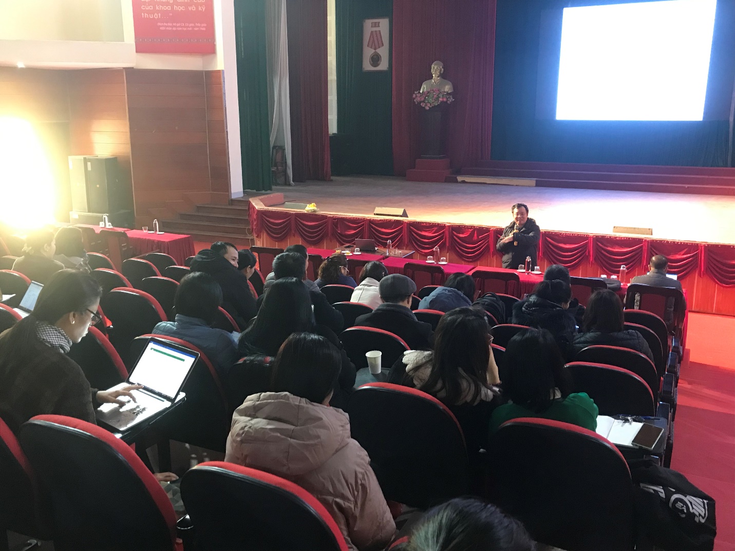 Các học viên tại lớp bồi dưỡng rất hào hứng với những kiến thức thực tế, mới mẻ từ các chuyên đề của ThS.NCS. Trần Vũ Tuấn Phan chia sẻ.  ThS.NCS. Trần Vũ Tuấn Phan từng đảm nhiệm vị trí giảng viên, cố vấn Đổi mới sáng tạo Quyền Giáo đốc Trung tâm dịch vụ KHCN; Học viện Khoa học, Công nghệ và Đổi mới sáng tạo - Bộ khoa học và Công nghệ.