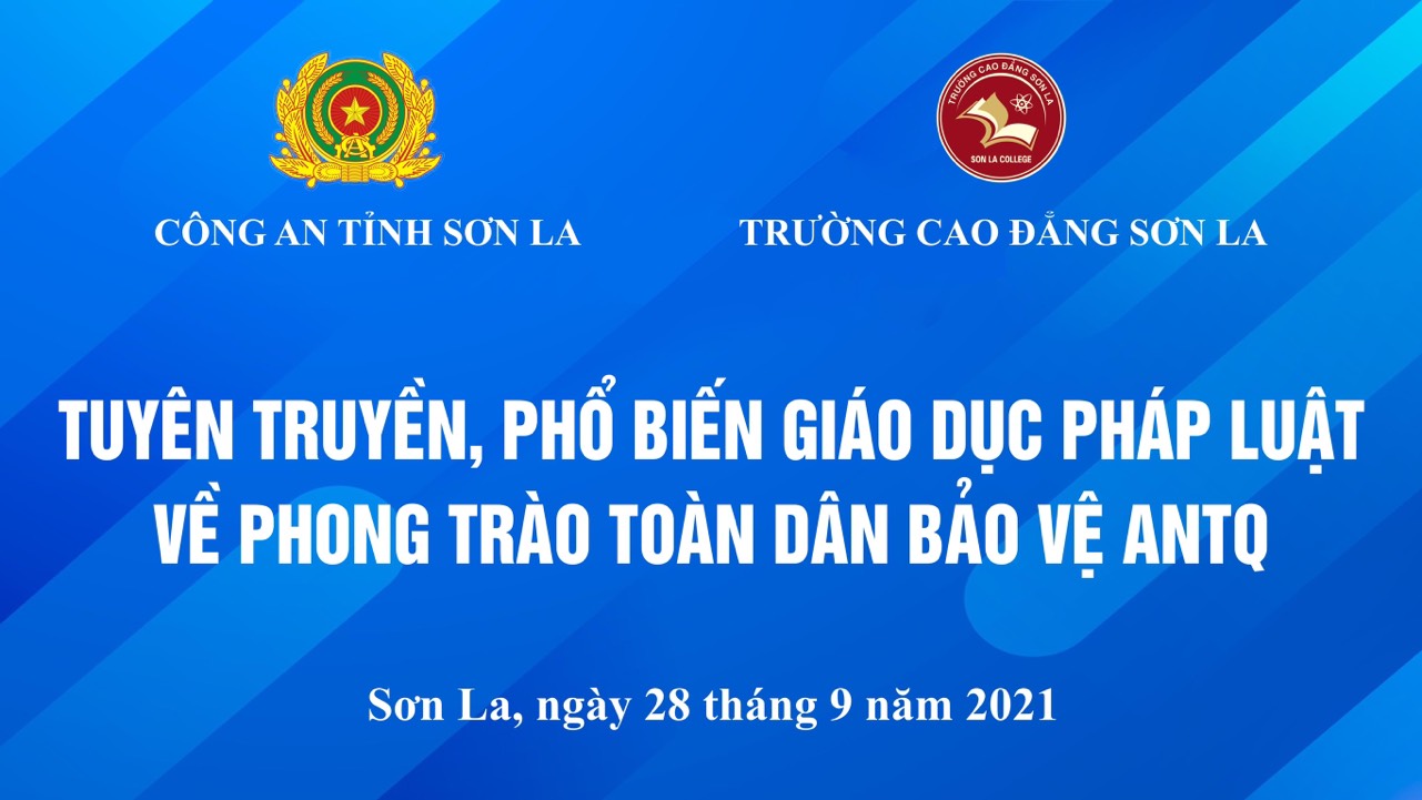 Thực hiện chương trình công tác tháng 9 năm 2021 của Trường Cao đẳng Sơn la, Công an tỉnh Sơn La, ngày 28/9/2021, Công an tỉnh Sơn la đã phối hợp với Nhà trường tổ chức Hội nghị tuyên truyền, phổ biến giáo dục pháp luật và phong trào toàn dân bảo vệ ANTQ cho học sinh, sinh viên mới nhập học khóa K58, năm học 2021-2022.