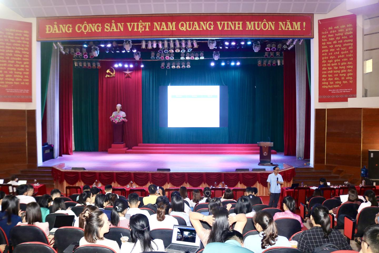 Trong buổi làm việc, các thầy cô đã được bồi dưỡng các kiến thức chuyên sâu về Kỹ năng xây dựng chuẩn đầu ra, xây dựng chương trình đào tạo; tổ chức thực hiện, kiểm tra đánh giá chương trình đào tạo đáp ứng chuẩn đầu ra. Báo cáo viên cũng đã hướng dẫn cụ thể về một số ngành nghề của các khoa quản lý ngành. Cán bộ, giảng viên tham gia buổi bồi dưỡng có nhiều trao đổi, thảo luận sôi nổi cùng Báo cáo viên.
