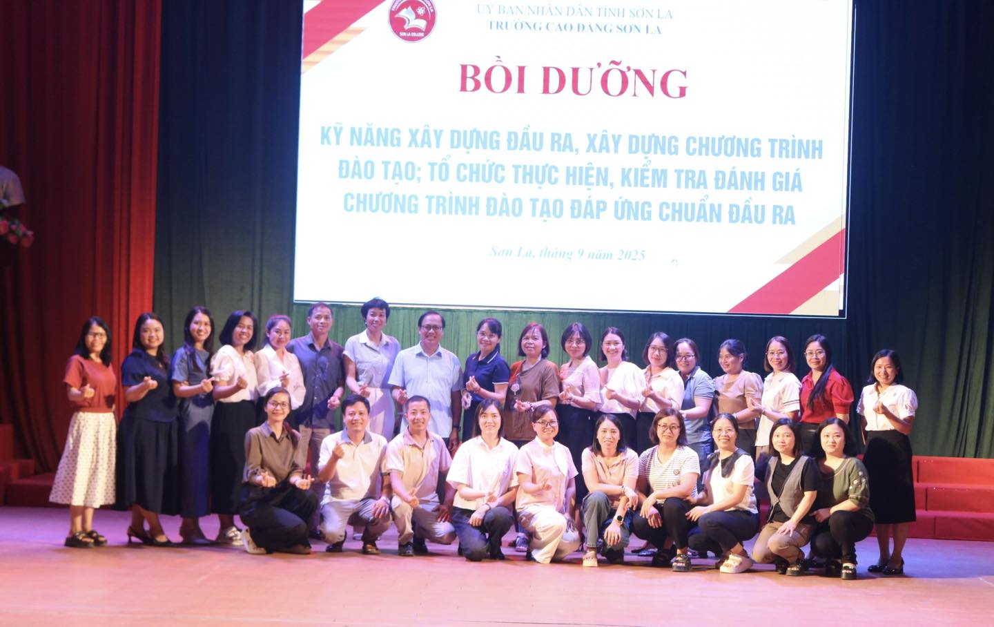 Thực hiện Kế hoạch số 303/KH-CĐSL ngày 15/9/2025 của Trường cao đẳng Sơn La, ngày 18/9/2025 tại Hội trường 900, Trường Cao đẳng Sơn La đã tổ chức Bồi dưỡng “Kỹ năng xây dựng chuẩn đầu ra, xây dựng chương trình đào tạo; tổ chức thực hiện, kiểm tra đánh giá chương trình đào tạo đáp ứng chuẩn đầu ra” cho 177 nhà giáo sinh hoạt chuyên môn thuộc các khoa đào tạo khối ngành Giáo dục nghề nghiệp. Với sự tham gia của Báo cáo viên - Tiến sĩ Hà Đức Ngọc - chuyên viên Phòng GD chính quy, Cục GDNN và GDTX, Bộ GD&ĐT.