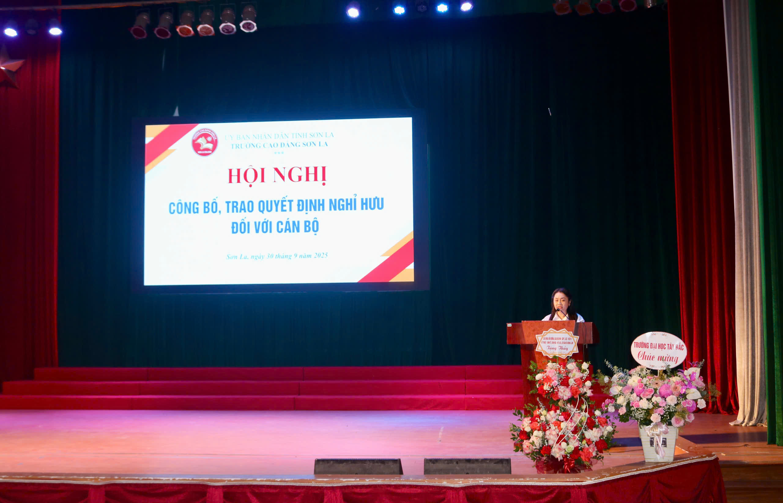 Tại Hội nghị, đồng chí Nguyễn Thị Hương – Phó Trưởng phòng TCCB - Chính trị tư tưởng, Sở GD&ĐT - công bố Quyết định nghỉ hưu để hưởng chế độ bảo hiểm xã hội đối với đồng chí Nguyễn Văn Minh, Phó Hiệu trưởng Trường Cao đẳng Sơn La. Tiếp đó, đại diện lãnh đạo Sở GD&ĐT, đồng chí Nguyễn Ngọc Quang - Phó Giám đốc Sở đã trao Quyết định nghỉ hưu cho đồng chí Minh.