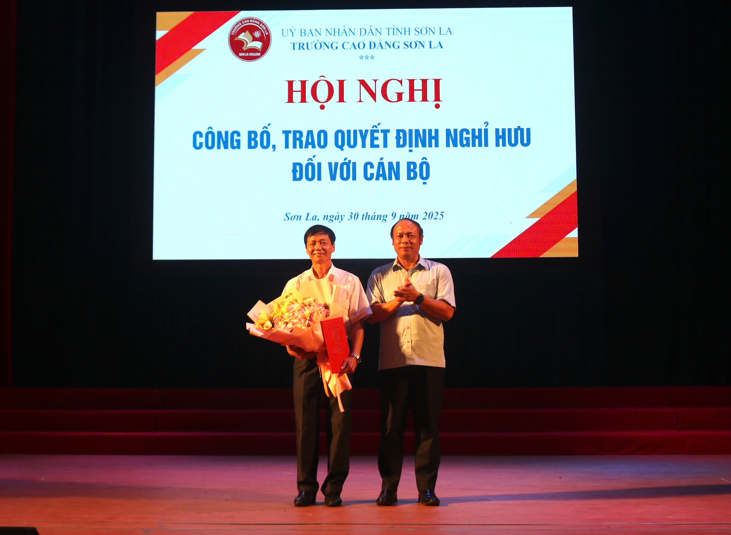 Thực hiện Quyết định số 1311/QĐ-UBND ngày 05/06/2025 của Chủ tịch Ủy ban nhân dân tỉnh Sơn La về việc nghỉ hưu để hưởng chế độ bảo hiểm xã hội. Chiều ngày 30/9/2025, tại Hội trường 900 chỗ, Trường Cao đẳng Sơn La đã trang trọng tổ chức Hội nghị công bố và trao Quyết định nghỉ hưu để hưởng chế độ bảo hiểm xã hội cho cán bộ thuộc diện Tỉnh quản lý đối với đồng chí Nguyễn Văn Minh – Phó Hiệu trưởng nhà trường.