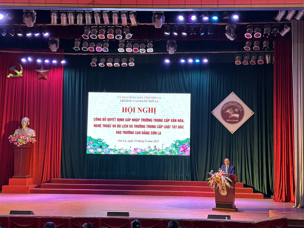 Hội nghị đã công bố và trao Quyết định số 864/QĐ-LĐTBXH ngày 05/7/2023 của Bộ Lao động - Thương binh và Xã hội về việc sáp nhập Trường trung cấp Văn hóa Nghệ thuật và Du lịch và Trường trung cấp Luật Tây Bắc vào Trường Cao đẳng Sơn La. Theo Quyết định, các Trường sáp nhập trên cơ sở bàn giao, kế thừa các điều kiện hiện có bao gồm: tài chính, tài sản, cơ sở vật chất trang thiết bị, đội ngũ nhà giáo, đội ngũ quản lý, nhân viên, người học,… của các trường sau sáp nhập, đặc biệt có trách nhiệm đảm bảo các quyền lợi của nhà giáo, cán bộ quản lý, nhân viên, người lao động và học sinh theo đúng quy định. Trường trung cấp Văn hóa Nghệ thuật và Du lịch và Trường trung cấp Luật Tây Bắc chịu trách nhiệm về toàn bộ tài sản, tài chính và hoạt động của trường theo quy định của pháp luật đến thời điểm UBND tỉnh tổ chức sáp nhập theo quy định.
