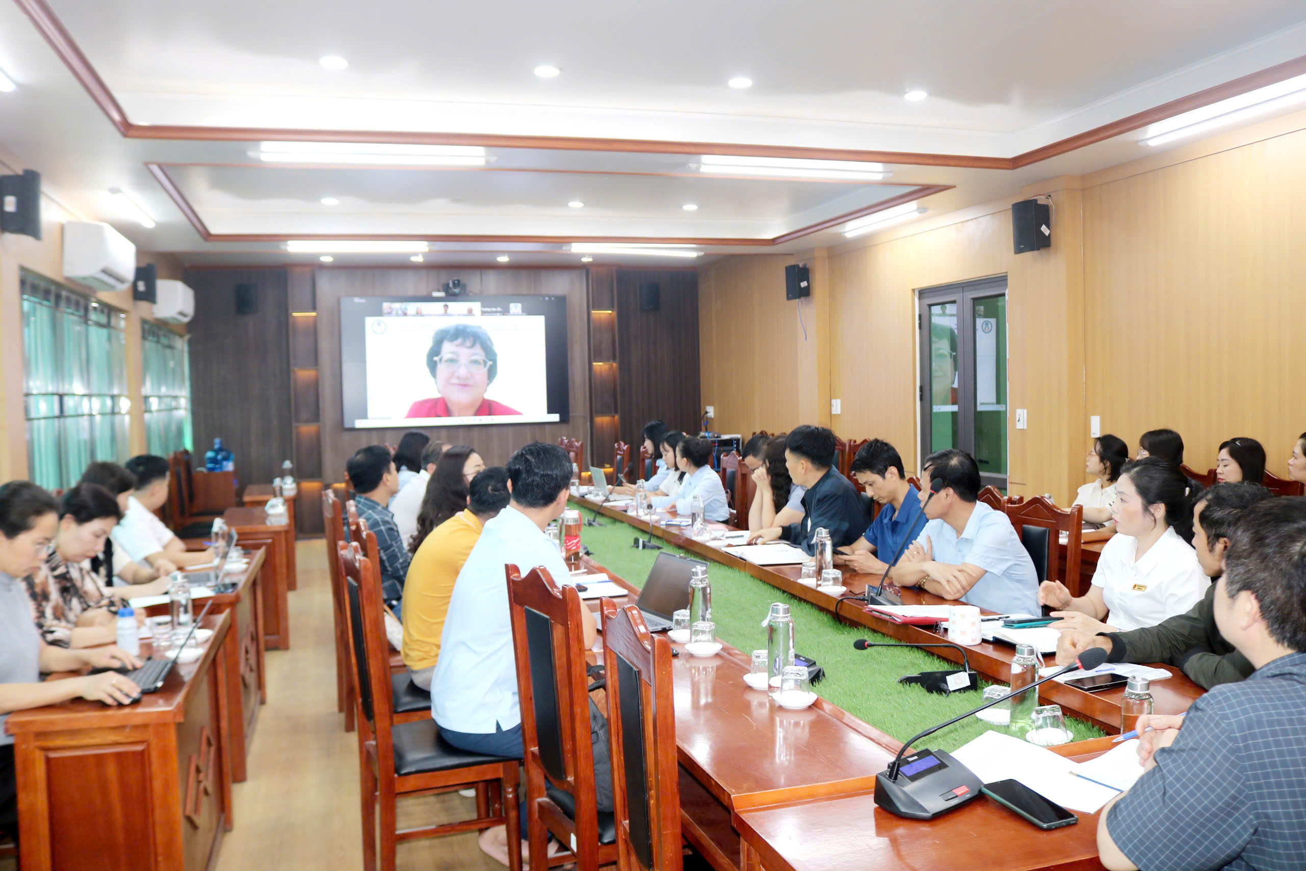 Đoàn chuyên gia ĐGN CTĐT do TT KĐCLGD Thăng Long làm việc trực tuyến với trường Cao đẳng Sơn La