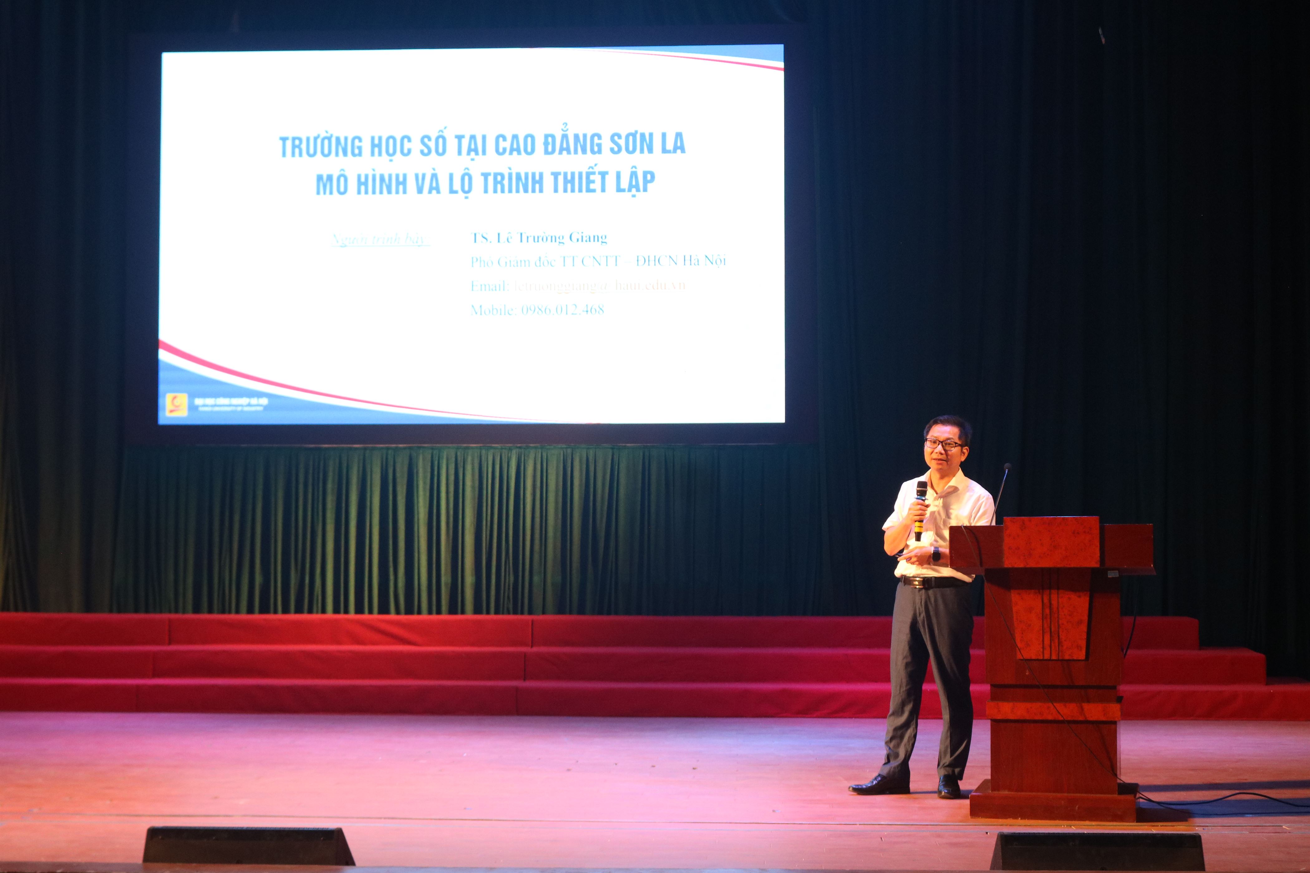 Tại hội thảo, các đại biểu đã được lắng nghe nhiều tham luận chuyên sâu, mang tính thực tiễn cao từ các chuyên gia hàng đầu. Đáng chú ý là bài tham luận về "Giải pháp trường học số tại trường Cao đẳng Sơn La - Mô hình hệ thống và lộ trình thiết lập" của ông Lê Trường Giang - Đại học Công nghiệp Hà Nội, đã đề xuất mô hình kiến trúc trường học số tích hợp cho Trường Cao đẳng Sơn La, nhằm giải quyết bài toán đặc thù của một cơ sở giáo dục miền núi. Tác giả kết hợp đồng bộ 4 khung lý thuyết nền tảng gồm: Tái thiết quy trình (BPR), Hoạch định chiến lược (ISP), Kiến trúc tổng thể (TOGAF) và Kiến trúc hướng dịch vụ (SOA).