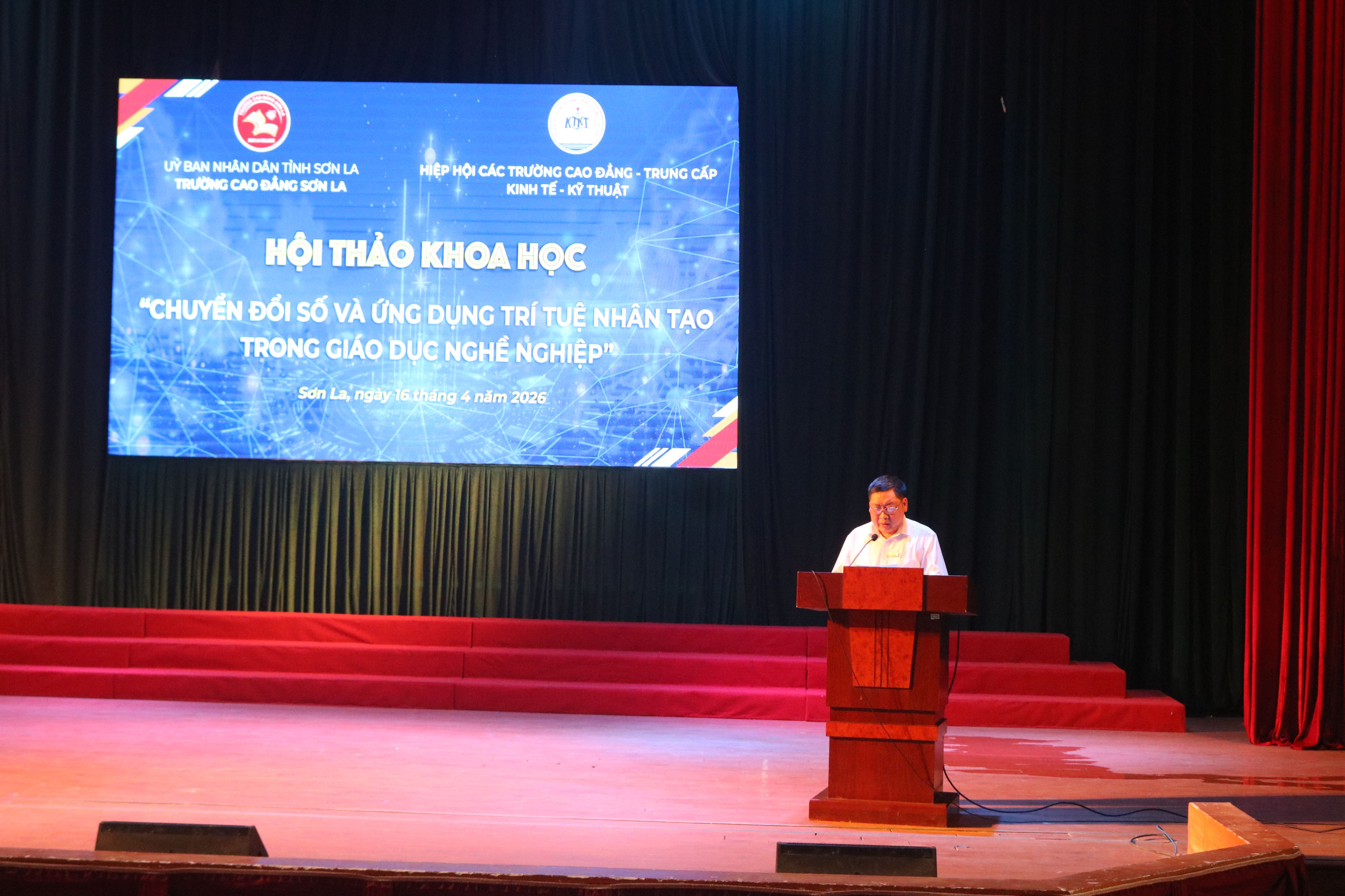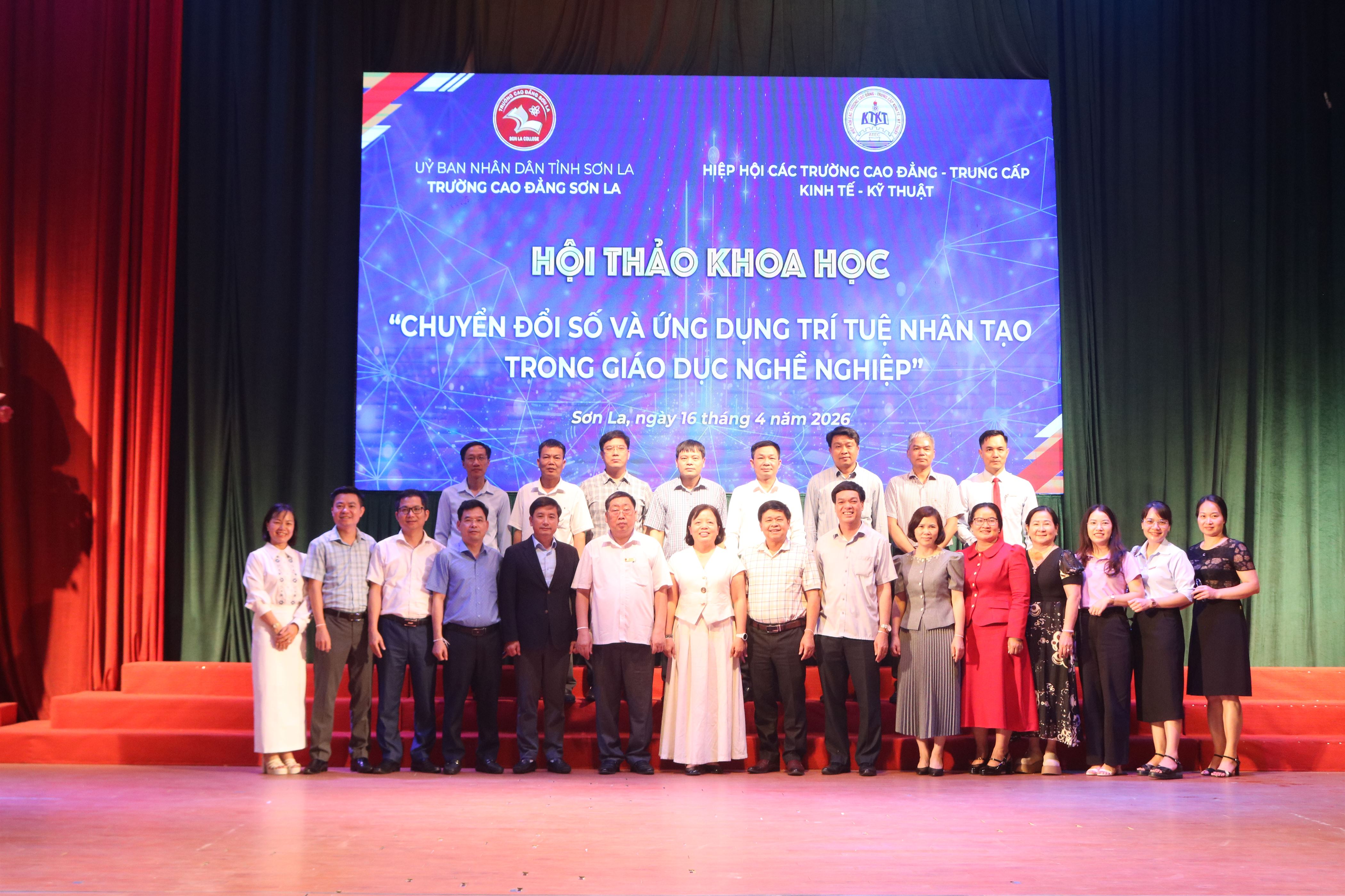 Sáng ngày 16 tháng 4 năm 2026, tại Hội trường 900 Trường Cao đẳng Sơn La, Trường Cao đẳng Sơn La đã phối hợp với Hiệp hội các trường Cao đẳng, Trung cấp Kinh tế - Kỹ thuật (ATEC) tổ chức thành công Hội thảo khoa học với chủ đề: “Chuyển đổi số và ứng dụng trí tuệ nhân tạo trong giáo dục nghề nghiệp”.