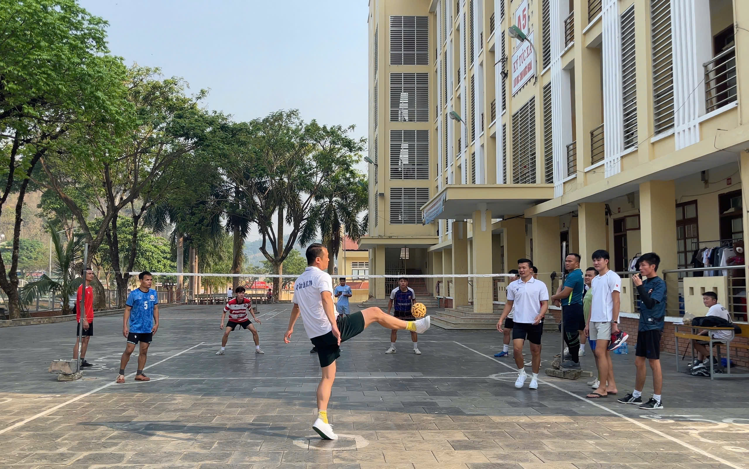 Bên cạnh đó, các hoạt động thể chất cũng diễn ra sôi nổi không kém. Xuyên suốt các ngày cuối tuần từ 04/4 đến 12/4/2026, sân bóng chuyền nhà Đa năng và sân cầu mây KTX A5 của nhà trường đã trở thành nơi hội tụ của sức trẻ và tinh thần thể thao cao thượng. Những trận đấu bóng chuyền nam, nữ và cầu mây nam không chỉ là dịp để rèn luyện sức khỏe mà còn là cơ hội để 415 Lưu học sinh, Lưu học viên Lào thắt chặt thêm tình đoàn kết, gắn bó.