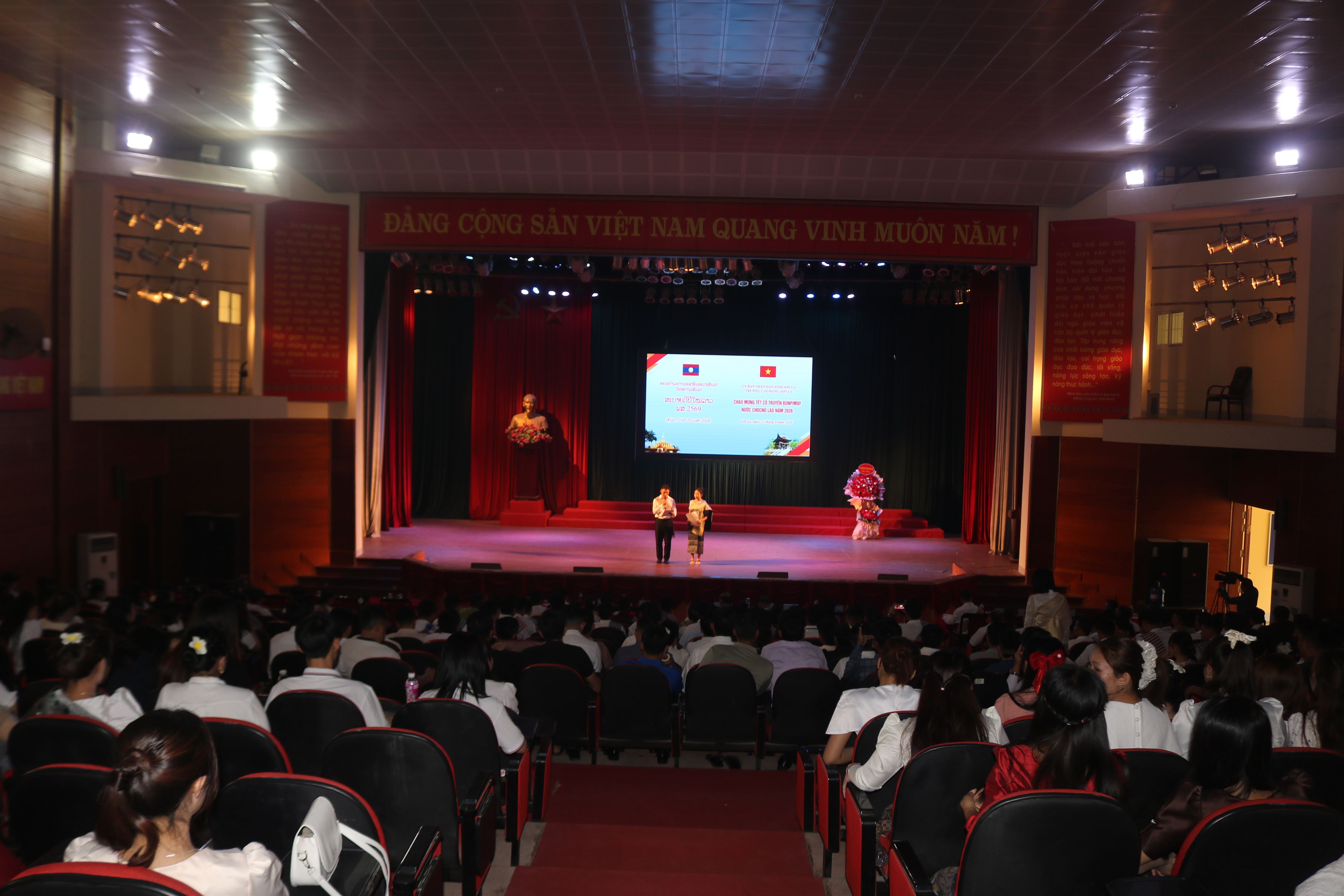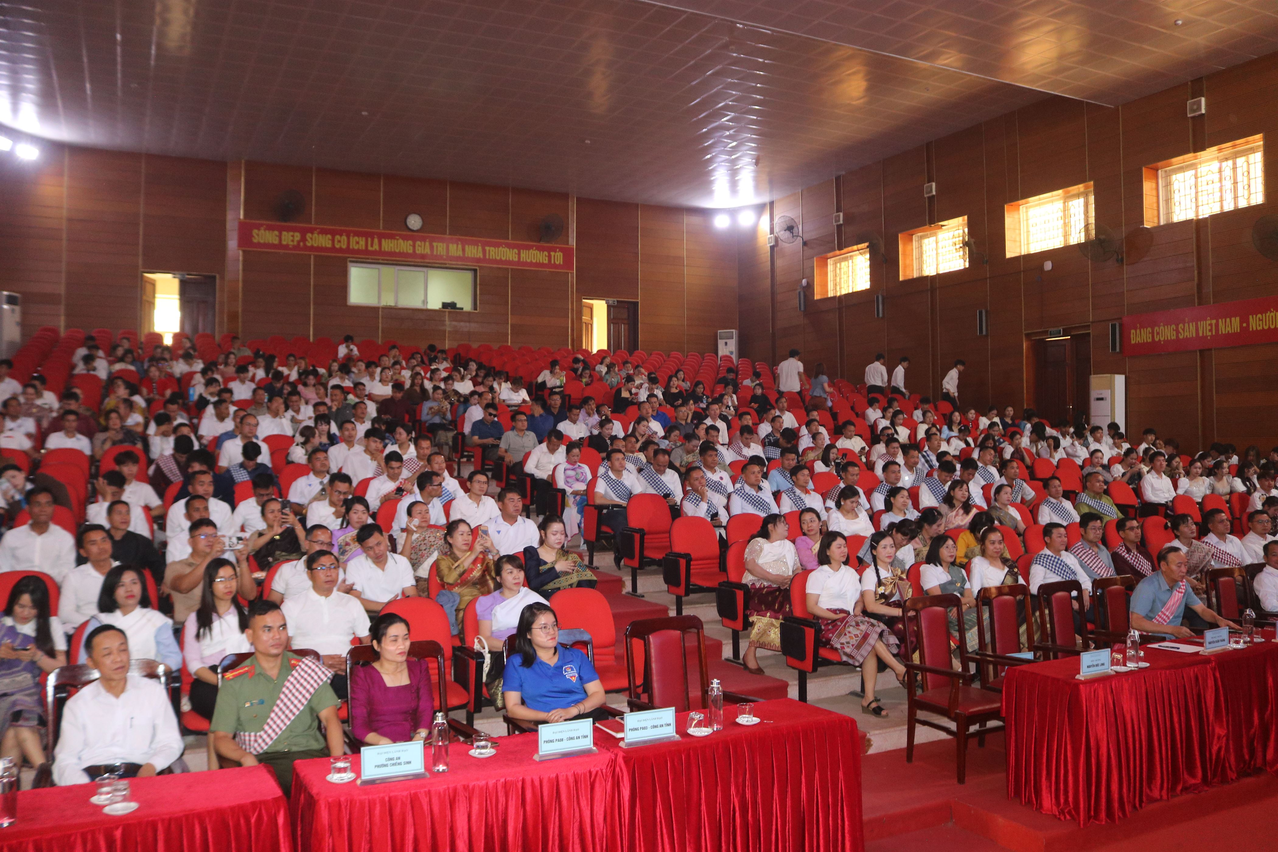 Chiều cùng ngày, chương trình gặp mặt “Thắm tình hữu nghị đặc biệt Việt Nam – Lào” đã được tổ chức trang trọng tại Hội trường 900. Dự chương trình, về phía đại biểu mời có: đại diện Sở Ngoại vụ, Công an tỉnh (Phòng PA03, PA08), đại diện UBND phường Chiềng Sinh, Công an phường Chiềng Sinh; Về phía Trường Cao đẳng Sơn La có Đảng uỷ, Ban Giám hiệu, Công đoàn cơ sở, Đoàn Thanh niên, Hội Sinh viên, đại biểu đại diện các đơn vị, lãnh đạo Khoa Bồi dưỡng, giáo viên giảng dạy tiếng Việt cho Lưu học sinh, Lưu học viên Lào và toàn thể 415 Lưu học sinh, Lưu học viên Lào đang học tập tại trường.