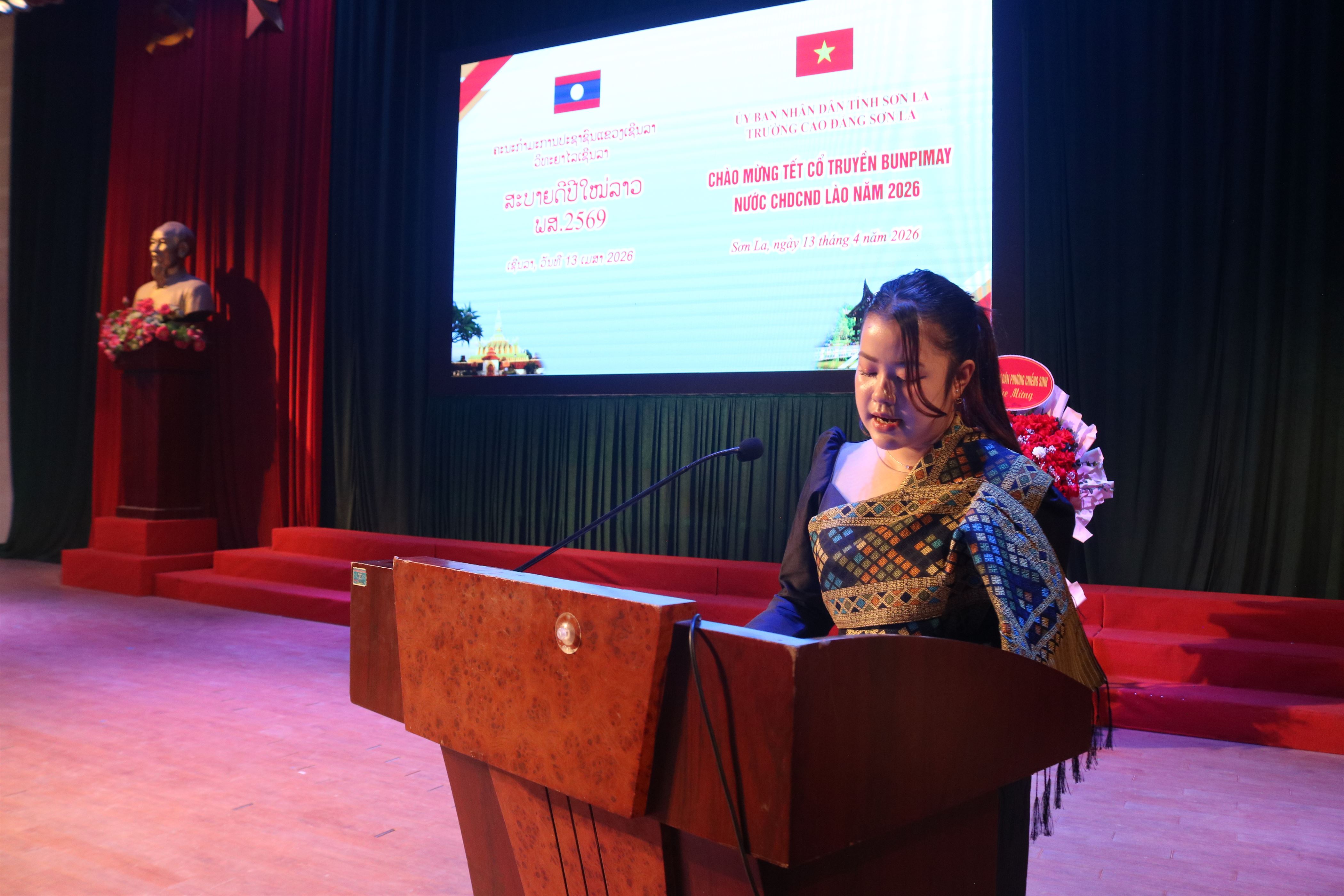 Phát biểu tại chương trình gặp mặt, đồng chí Nguyễn Xuân Thắng – Phó Bí thư Đảng uỷ, Phó Hiệu trưởng Trường Cao đẳng Sơn La đã gửi lời chúc mừng nồng nhiệt nhất tới các Lưu học sinh và Lưu học viên Lào, đồng thời khẳng định mối quan hệ anh em đặc biệt, thủy chung son sắt giữa hai dân tộc Việt - Lào nói chung cũng như giữa tỉnh Sơn La với các tỉnh Bắc Lào nói riêng. Thấu hiểu nỗi niềm xa quê của các học viên, lãnh đạo nhà trường nhấn mạnh việc tổ chức chuỗi hoạt động văn hóa, văn nghệ, thể dục, thể thao và các nghi lễ truyền thống như buộc chỉ cổ tay, té nước nhằm tạo dựng một ngôi nhà thứ hai ấm áp, giúp các em đón Tết trọn vẹn như tại quê hương. Nhà trường luôn tạo điều kiện thuận lợi về học tập, sinh hoạt và hỗ trợ để các em yên tâm học tập, rèn luyện. Qua đó, đồng chí lãnh đạo nhà trường gửi gắm kỳ vọng các học viên và sinh viên sẽ nỗ lực học tập, rèn luyện để trở thành những viên gạch hồng góp phần xây dựng đất nước Lào phồn vinh và không ngừng vun đắp cho tình hữu nghị vĩ đại giữa hai quốc gia mãi mãi xanh tươi, đời đời bền vững.