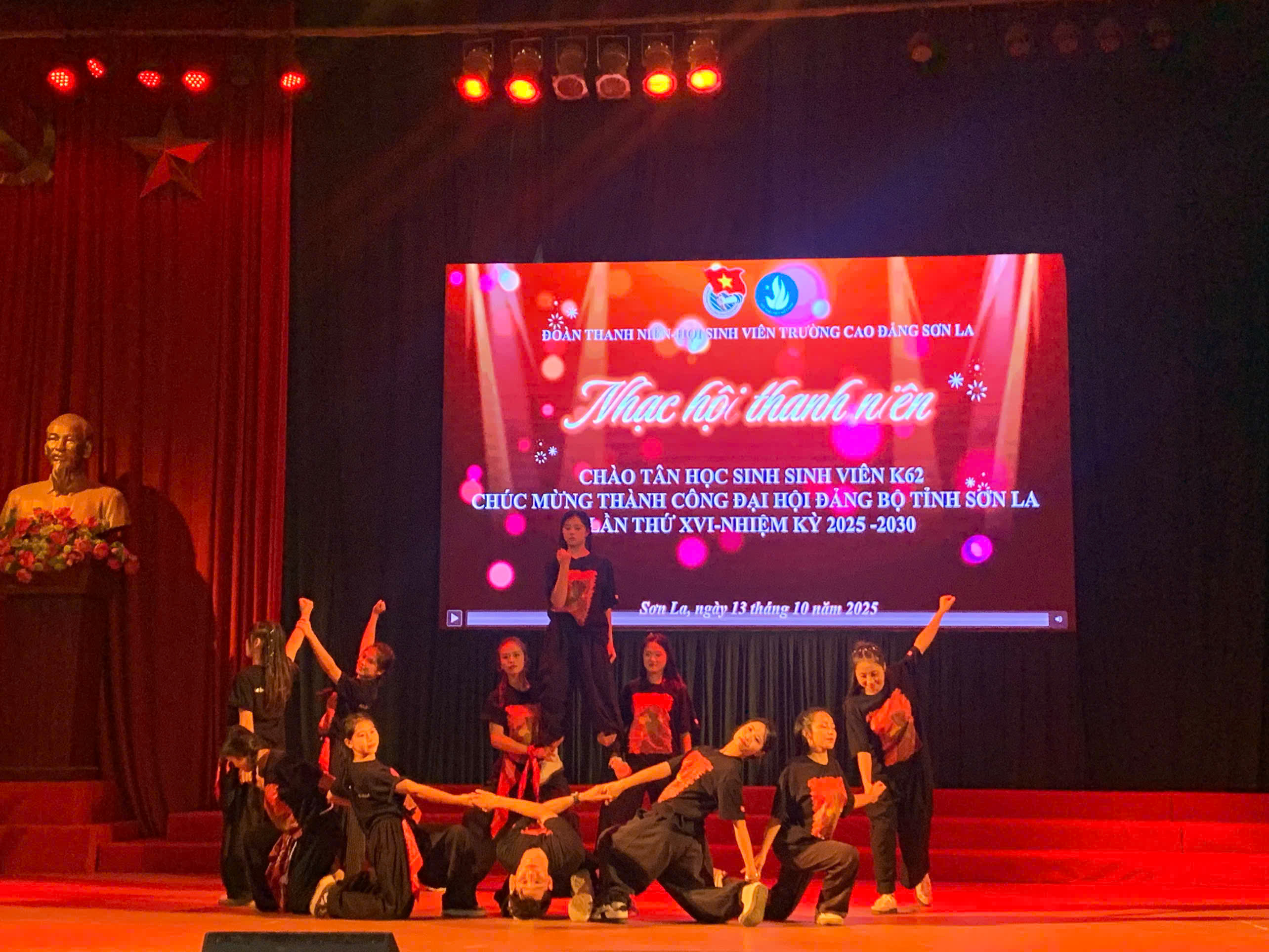 Tối ngày 13/10/2025, tại Hội trường 900 chỗ của Trường Cao đẳng Sơn La đã diễn ra đêm "Nhạc hội thanh niên Chào tân HSSV K62" trong không khí tưng bừng, rộn rã. Sự kiện không chỉ là một lời chào nồng nhiệt gửi đến các bạn tân học sinh, sinh viên khóa 62 mà còn là hoạt động thiết thực chào mừng Đại hội Đảng bộ tỉnh Sơn La lần thứ XVI, nhiệm kỳ 2025-2030.