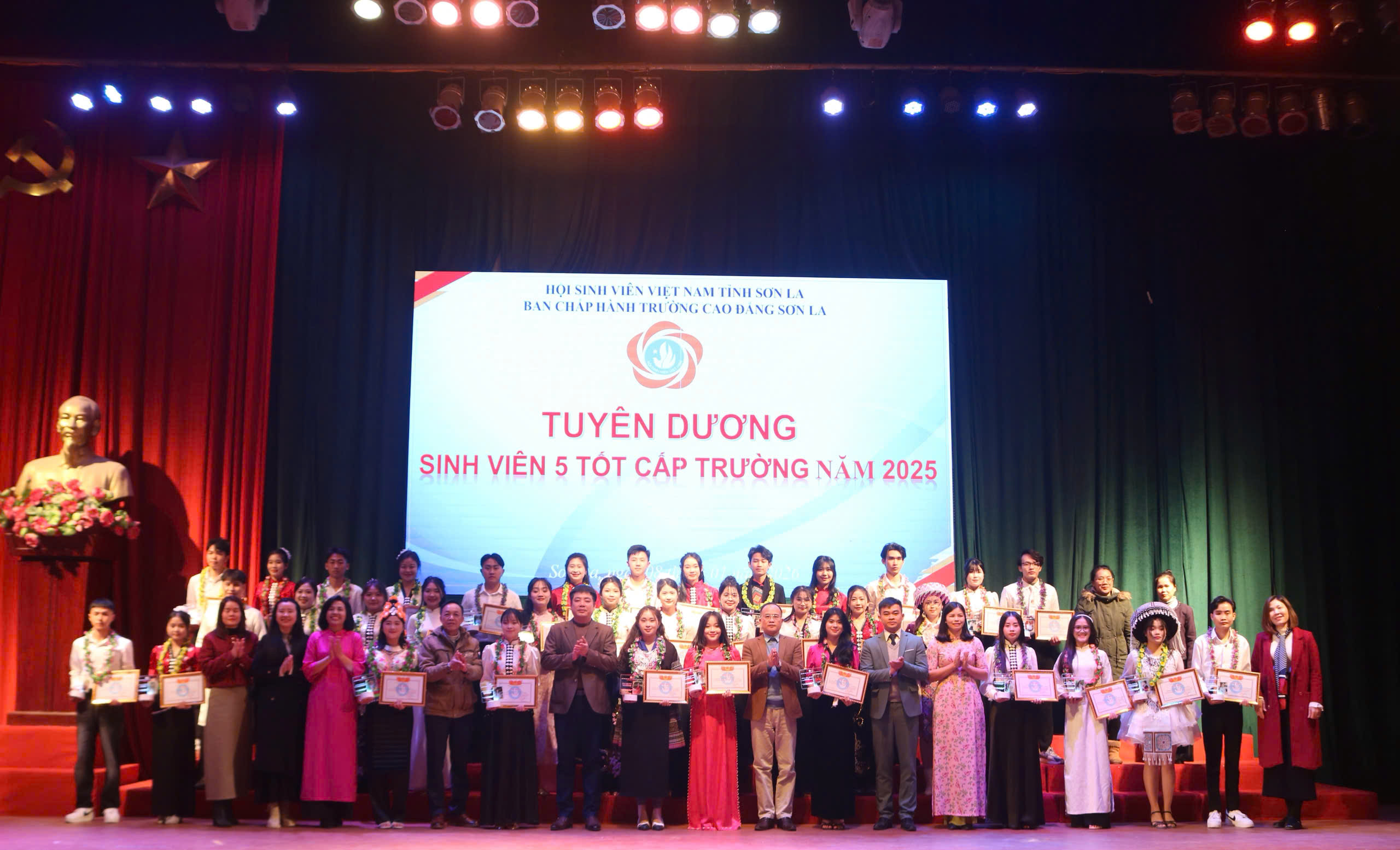 Hòa chung không khí thi đua sôi nổi của tuổi trẻ cả nước chào mừng kỷ niệm 76 năm Ngày truyền thống học sinh, sinh viên và Hội Sinh viên Việt Nam (09/01/1950 – 09/01/2026), tối ngày 08/01/2026, Hội Sinh viên Trường Cao đẳng Sơn La đã long trọng tổ chức Gala “Tự hào sinh viên Trường Cao đẳng Sơn La” năm học 2025 - 2026 – Tuyên dương danh hiệu “Sinh viên 5 tốt” cấp trường năm 2025 và Nhạc hội học sinh, sinh viên chào Xuân 2026 tại Hội trường 900.