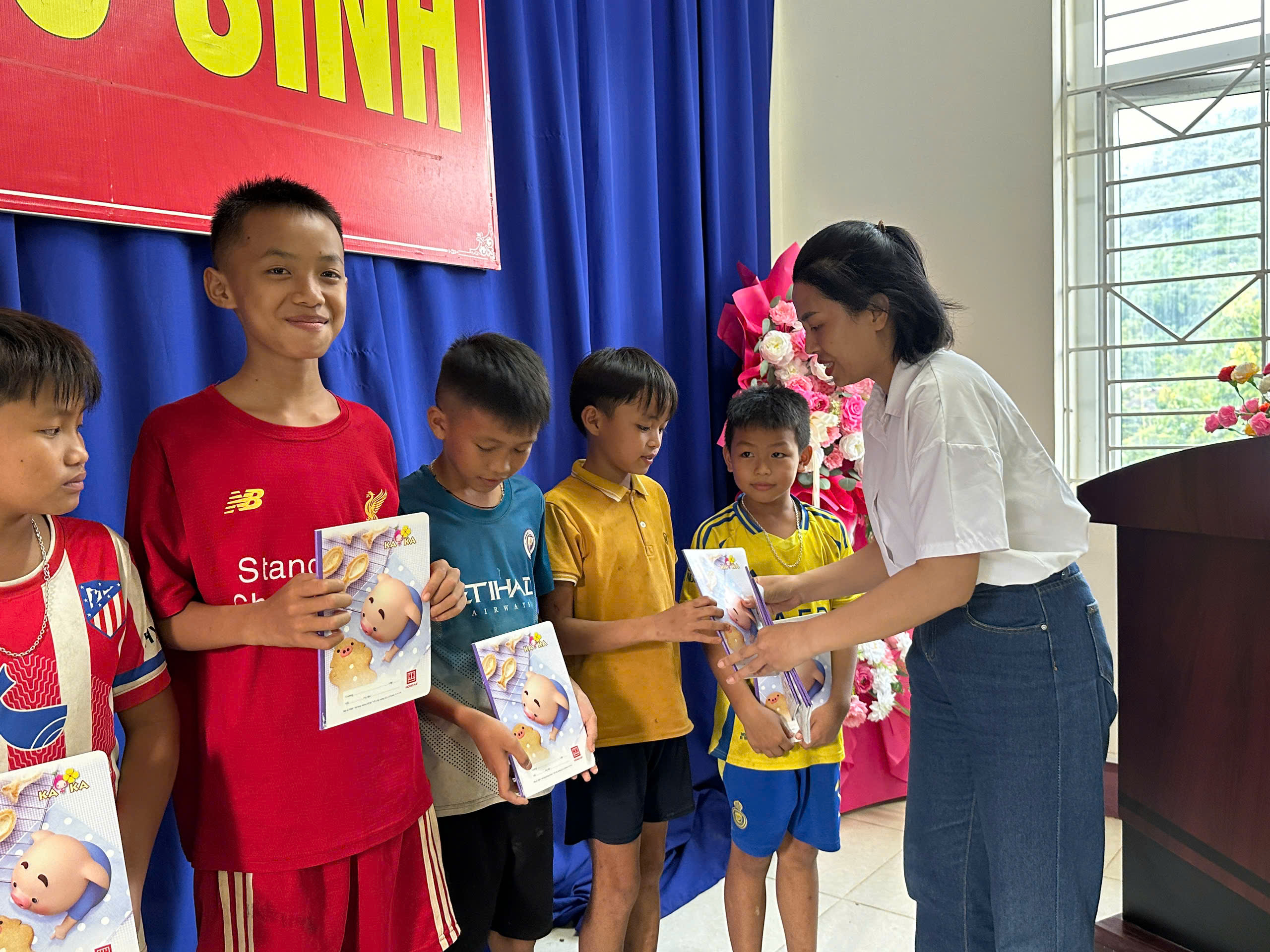 Chương trình đã mang đến những phần quà ý nghĩa, bao gồm sách vở, bút, nhiều vật dụng học tập cần thiết khác, giúp các em học sinh vùng lũ có thêm điều kiện để tiếp tục con đường học tập, vững bước đến trường sau những thiệt hại do thiên tai gây ra.