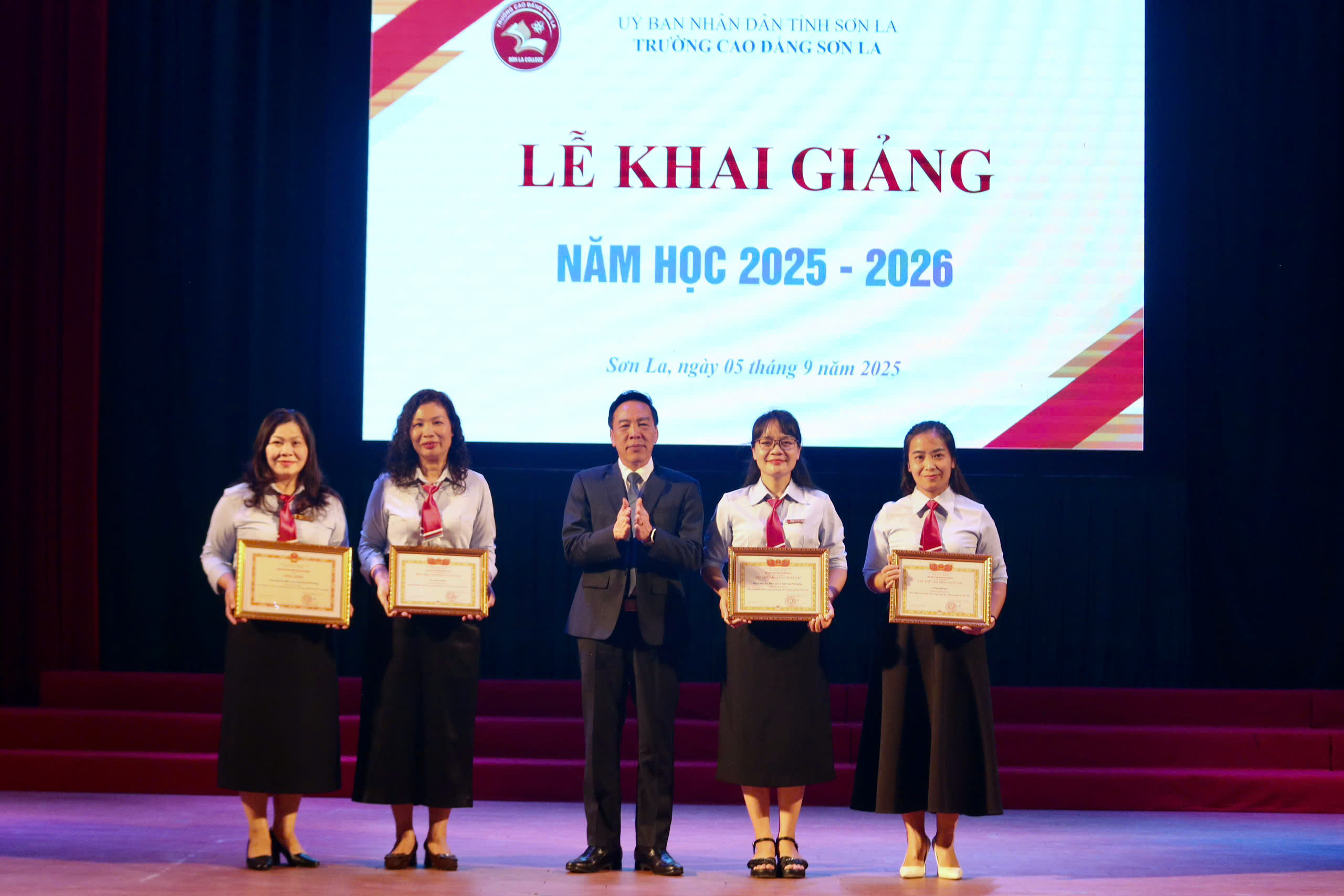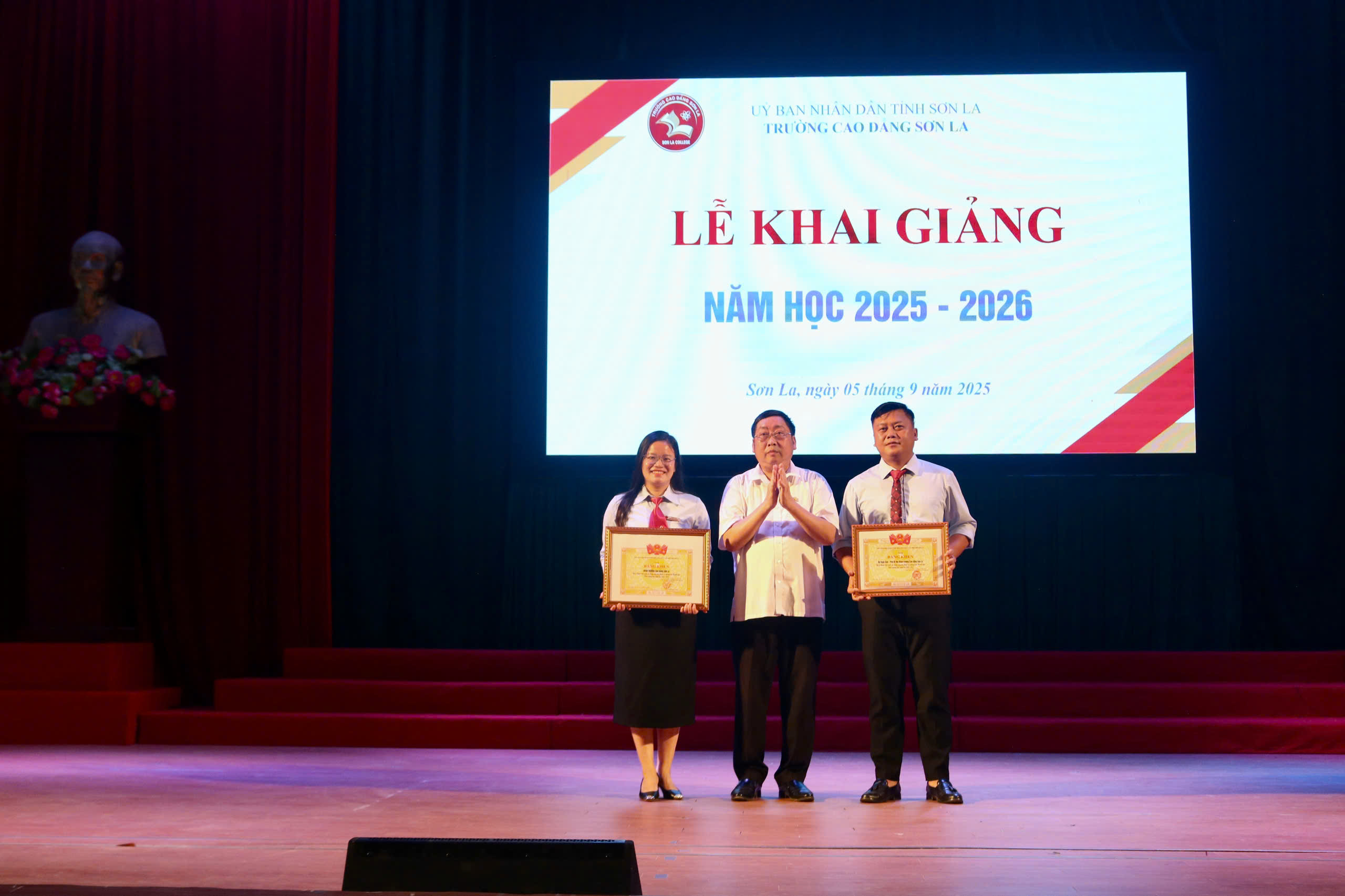 Để ghi nhận thành tích của nhà trường đã đạt được trong năm học 2024 - 2025, UBND tỉnh đã có quyết định tặng danh hiệu Tập thể lao động xuất sắc đối với 3 tập thể và Tặng bằng khen của Chủ tịch UBND tỉnh đối với Khoa GDMN và GDPT vì đã có thành tích xuất sắc trong công tác giáo dục và đào tạo năm học 2023-2024 và năm học 2024-2025; Ban Chấp hành Tỉnh đoàn Sơn La tặng Bằng khen cho cho 1 tập thể và 1 cá nhân có thành tích xuất sắc trong công tác đoàn và phong trào thanh niên Khối Trường học năm học 2024 – 2025; Ban Chấp hành Hội Sinh viên Việt Nam tỉnh Sơn La khen thưởng 3 tập thể, 8 cá nhân có thành tính xuất sắc trong công tác Hội và phong trào sinh viên năm học 2024 – 2025; Trao học bổng khuyến học của Quỹ học bổng Tô Hiệu cho 10 HSSV và 05 lưu học sinh nước CHDCND Lào; Ngân hàng TMCP Bắc Á, Chi nhánh Sơn La trao tài trợ cho 10 HSSV.