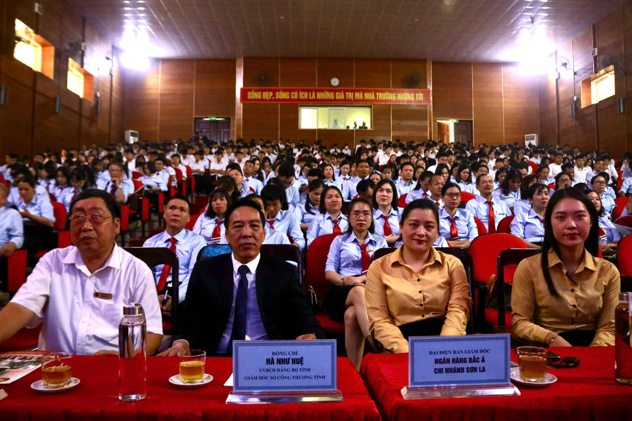 Tham dự buổi lễ có sự hiện diện của đồng chí Hà Như Huệ - Ủy viên BCH Đảng bộ tỉnh, Giám đốc Sở Công thương; Đồng chí Vũ Thị Thu – Phó Giám đốc Ngân hàng TMCP Bắc Á, Chi nhánh Sơn La; Đồng chí Nguyễn Đức Long – Bí thư Đảng uỷ, Hiệu trưởng nhà trường cùng toàn thể 288 cán bộ, viên chức, người lao động và 400 học sinh, sinh viên đại diện cho hơn 3000 học sinh, sinh viên đang theo học tại trường.