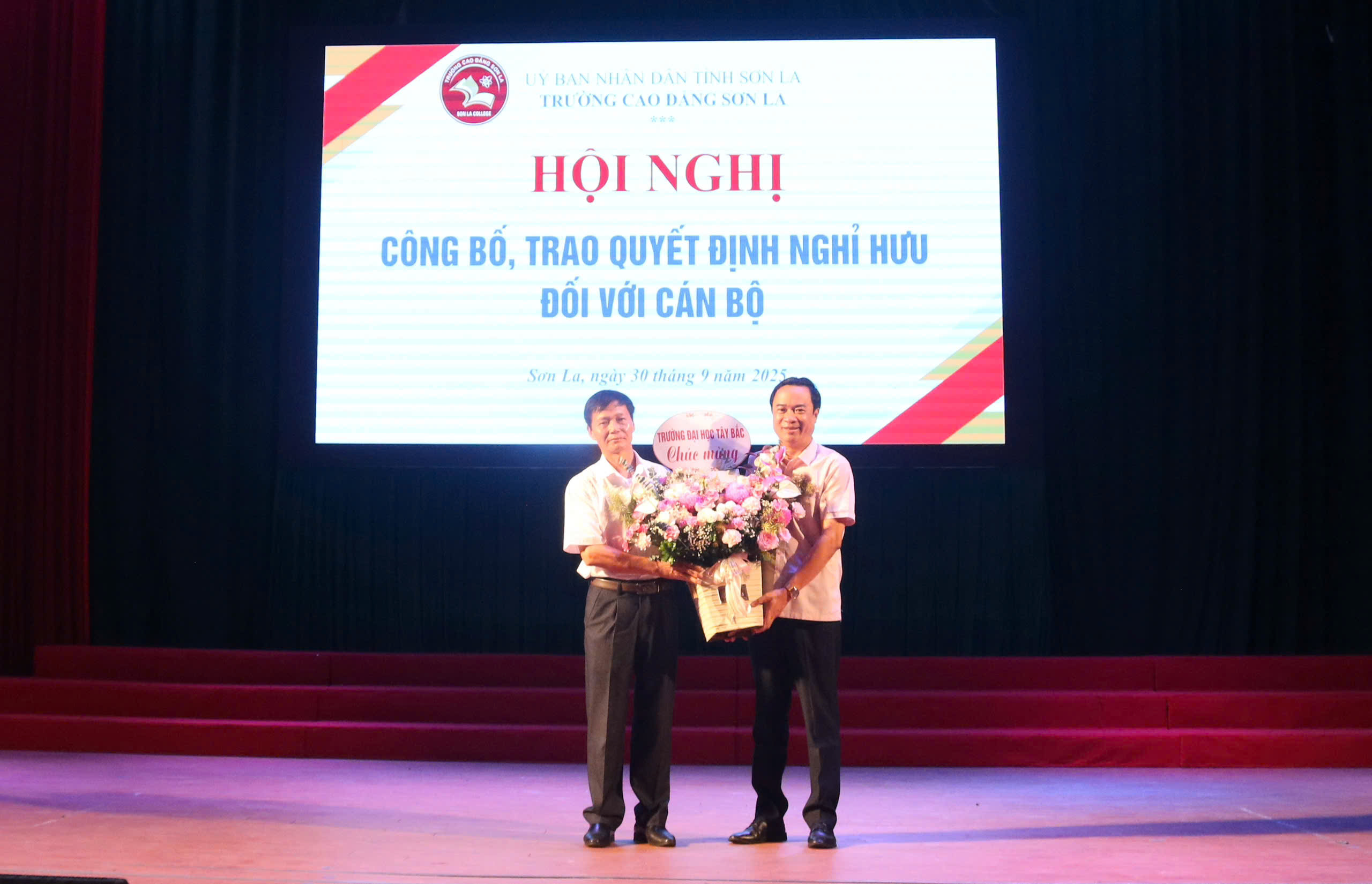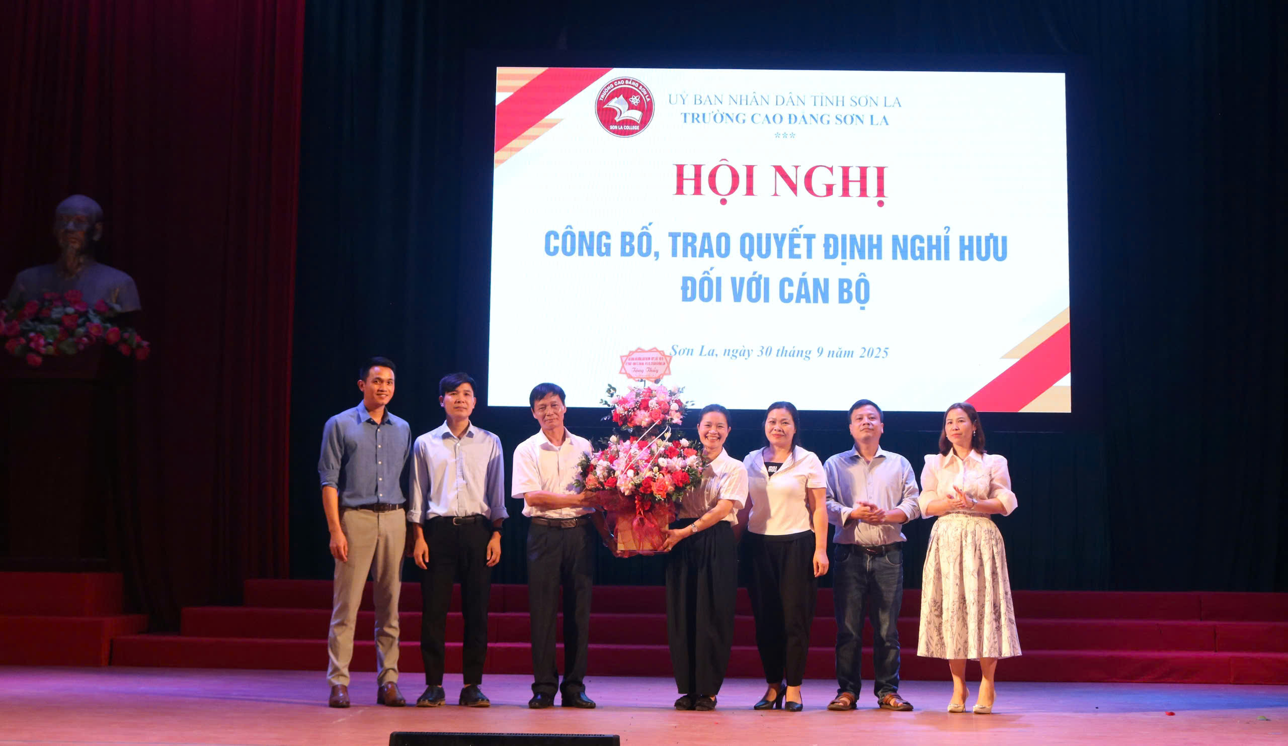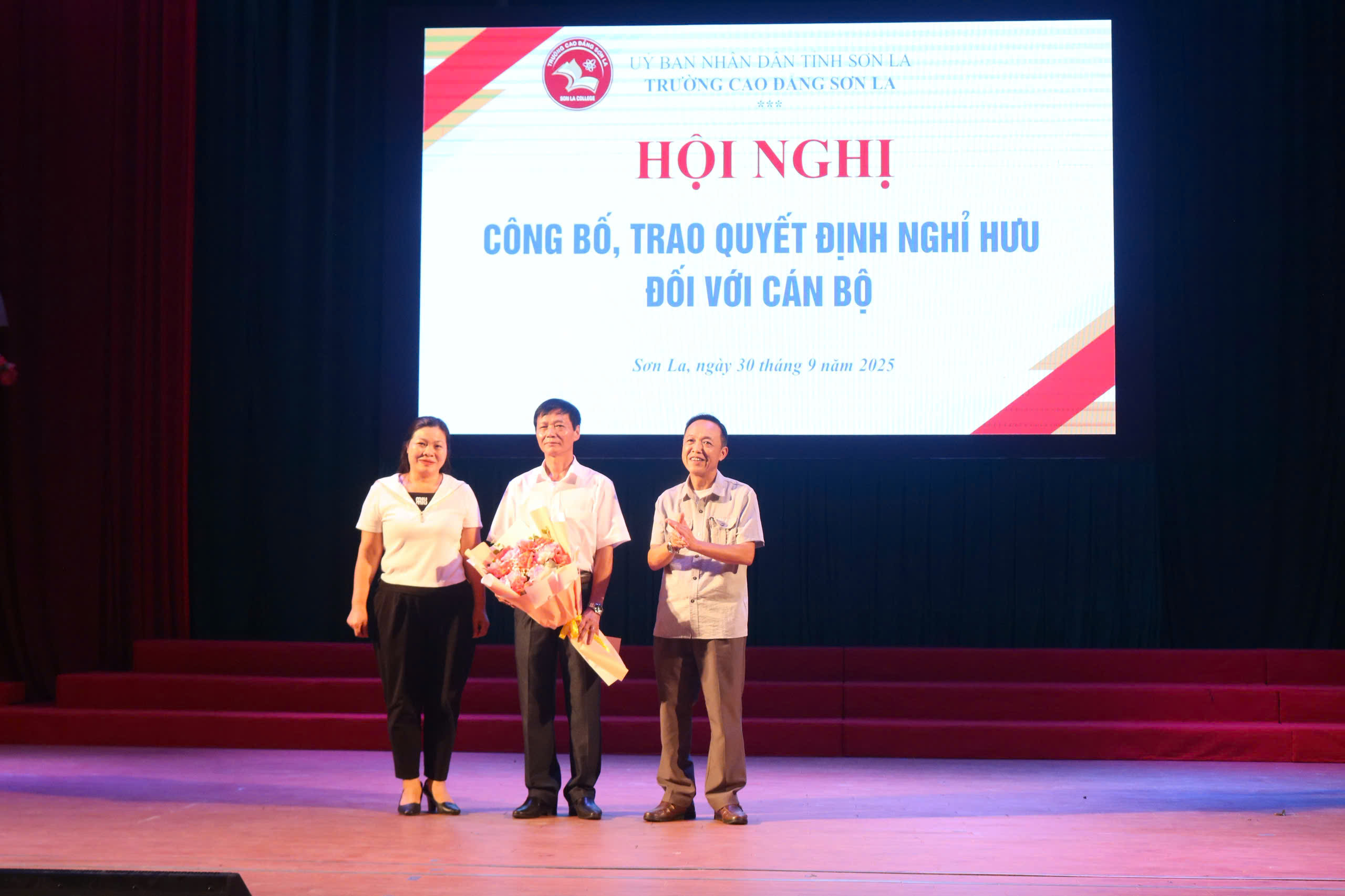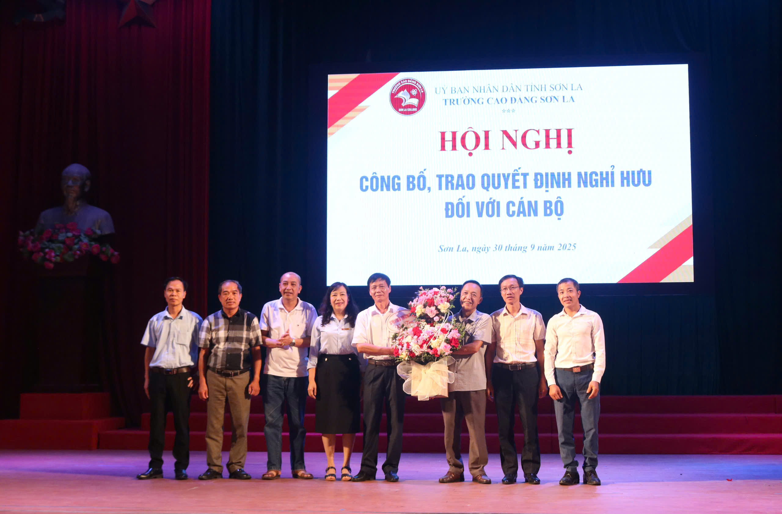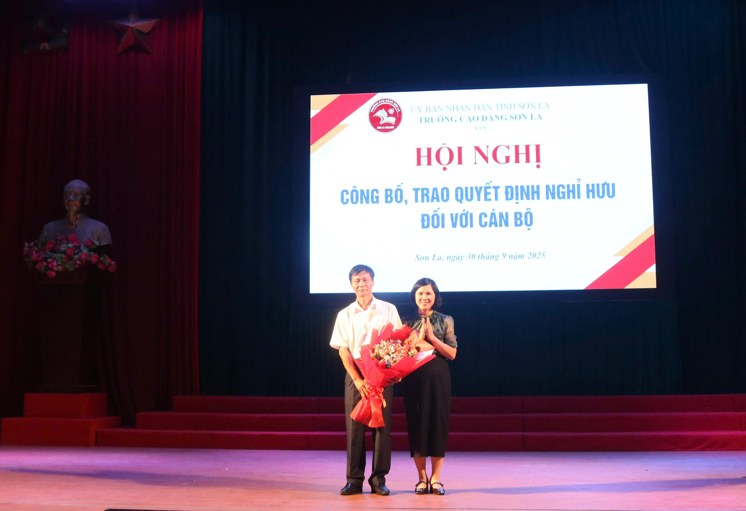 Thực hiện Quyết định số 1311/QĐ-UBND ngày 05/06/2025 của Chủ tịch Ủy ban nhân dân tỉnh Sơn La về việc nghỉ hưu để hưởng chế độ bảo hiểm xã hội. Chiều ngày 30/9/2025, tại Hội trường 900 chỗ, Trường Cao đẳng Sơn La đã trang trọng tổ chức Hội nghị công bố và trao Quyết định nghỉ hưu để hưởng chế độ bảo hiểm xã hội cho cán bộ thuộc diện Tỉnh quản lý đối với đồng chí Nguyễn Văn Minh – Phó Hiệu trưởng nhà trường.