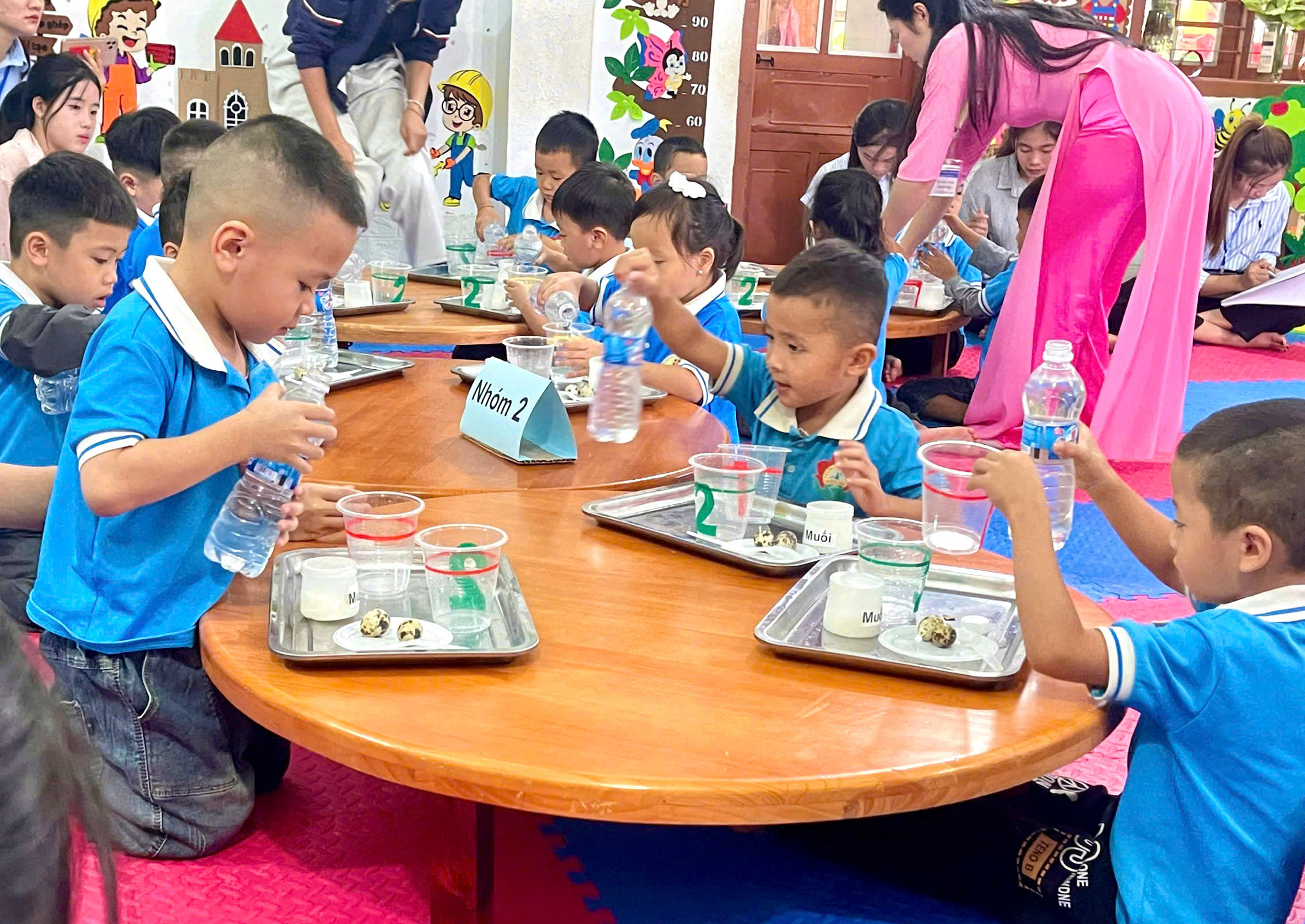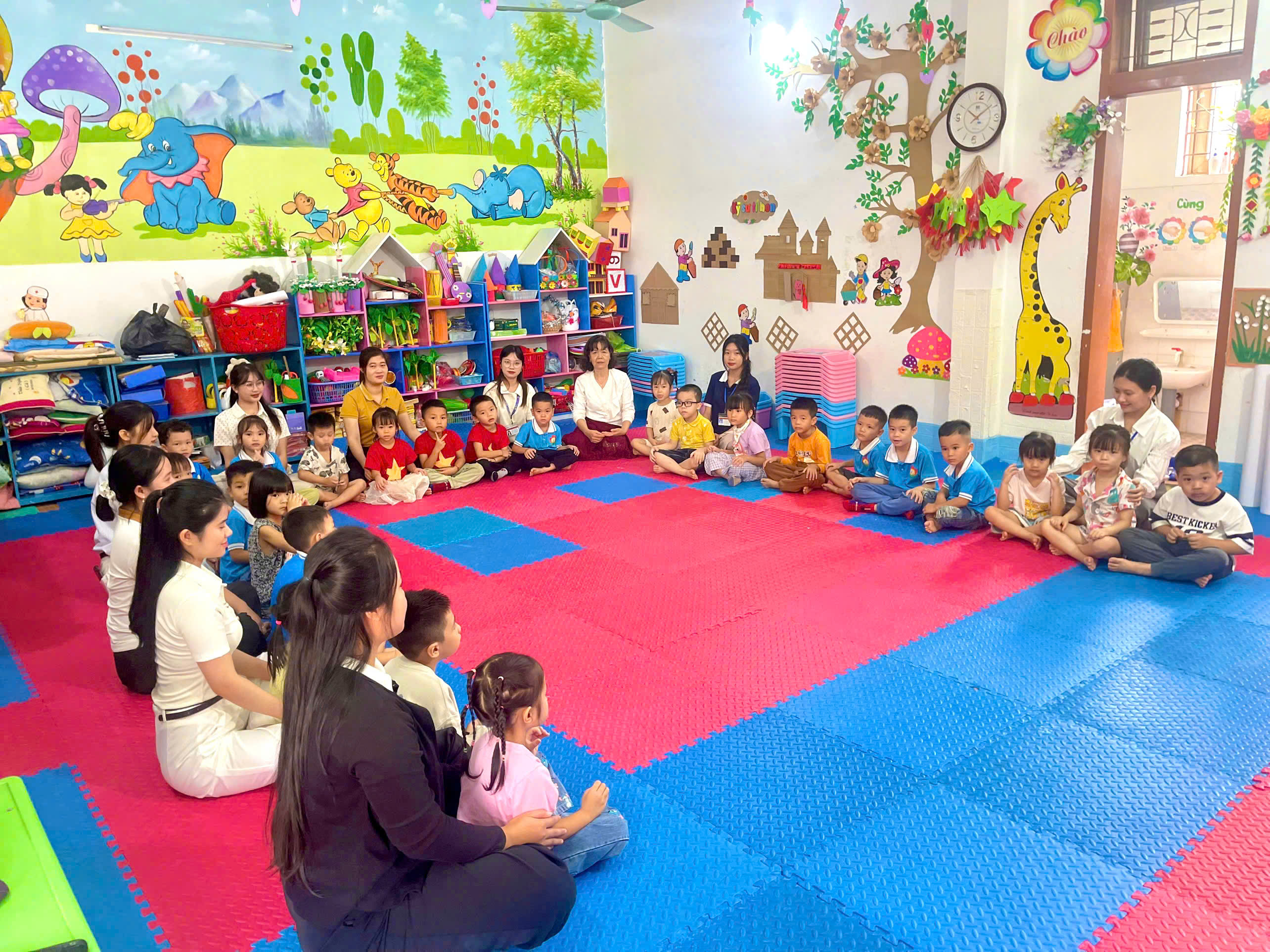 Các sinh viên tham gia các hoạt động với trẻ tại Trường Mầm non Chiềng Sinh