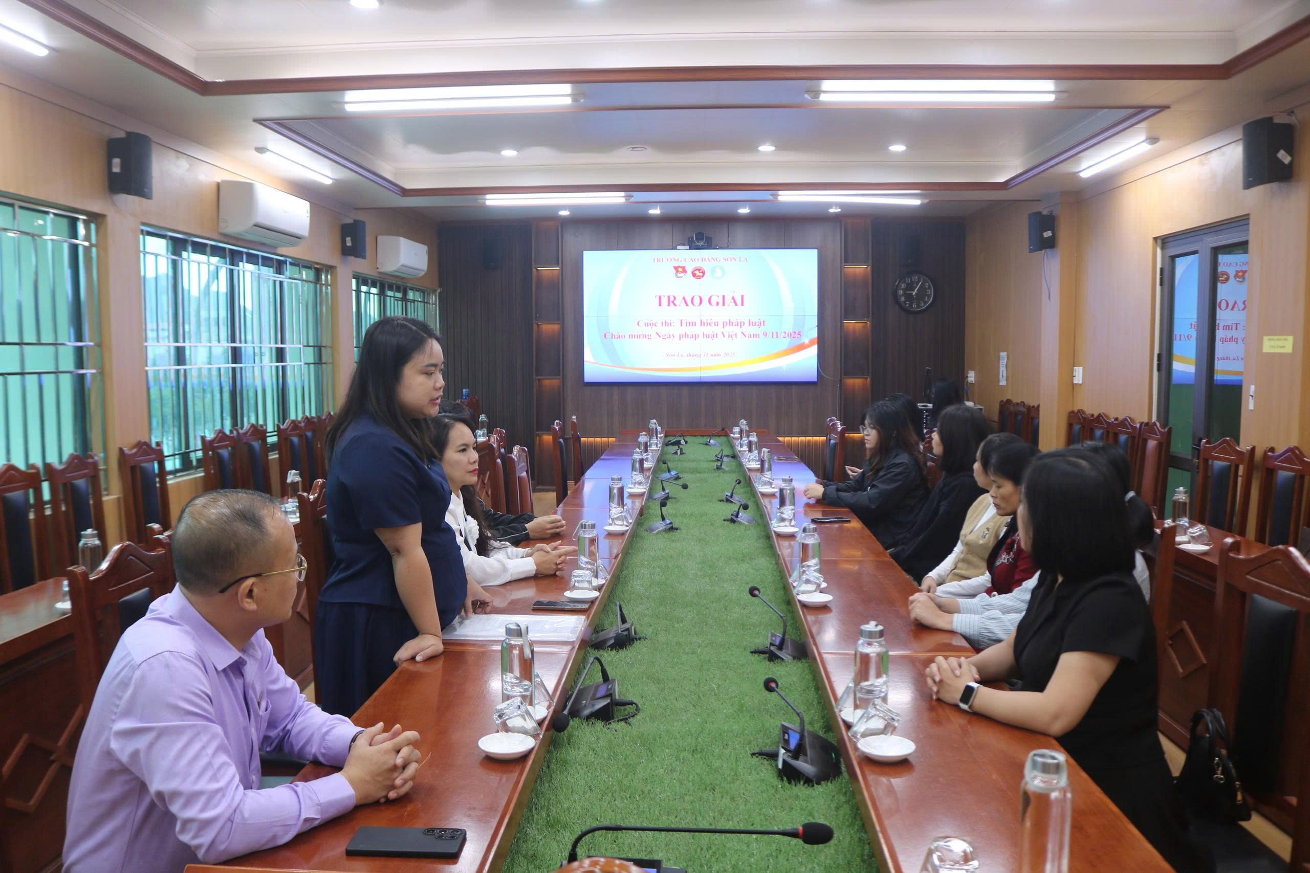Thực hiện Kế hoạch số 328/KH-CĐSL ngày 08/10/2025 của Trường Cao đẳng Sơn La về việc tổ chức hưởng ứng Ngày Pháp luật nước Cộng hòa xã hội chủ nghĩa Việt Nam (09/11) năm 2025, sáng ngày 07/11/2025, tại Phòng họp số 2 – Nhà Hiệu bộ, Trường Cao đẳng Sơn La đã tổ chức Trao giải Cuộc thi viết tìm hiểu Ngày Pháp luật Việt Nam năm 2025.