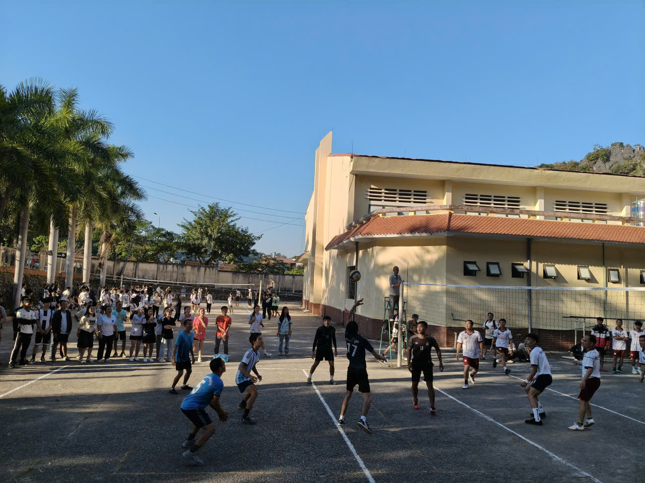 Ngay sau lễ khai mạc ngắn gọn nhưng trang trọng, các trận đấu mở màn ở nội dung Bóng chuyền nam và Bóng chuyền nữ đã chính thức diễn ra trong tiếng hò reo cổ vũ cuồng nhiệt của hàng trăm khán giả là LHS Lào và HSSV nhà trường.