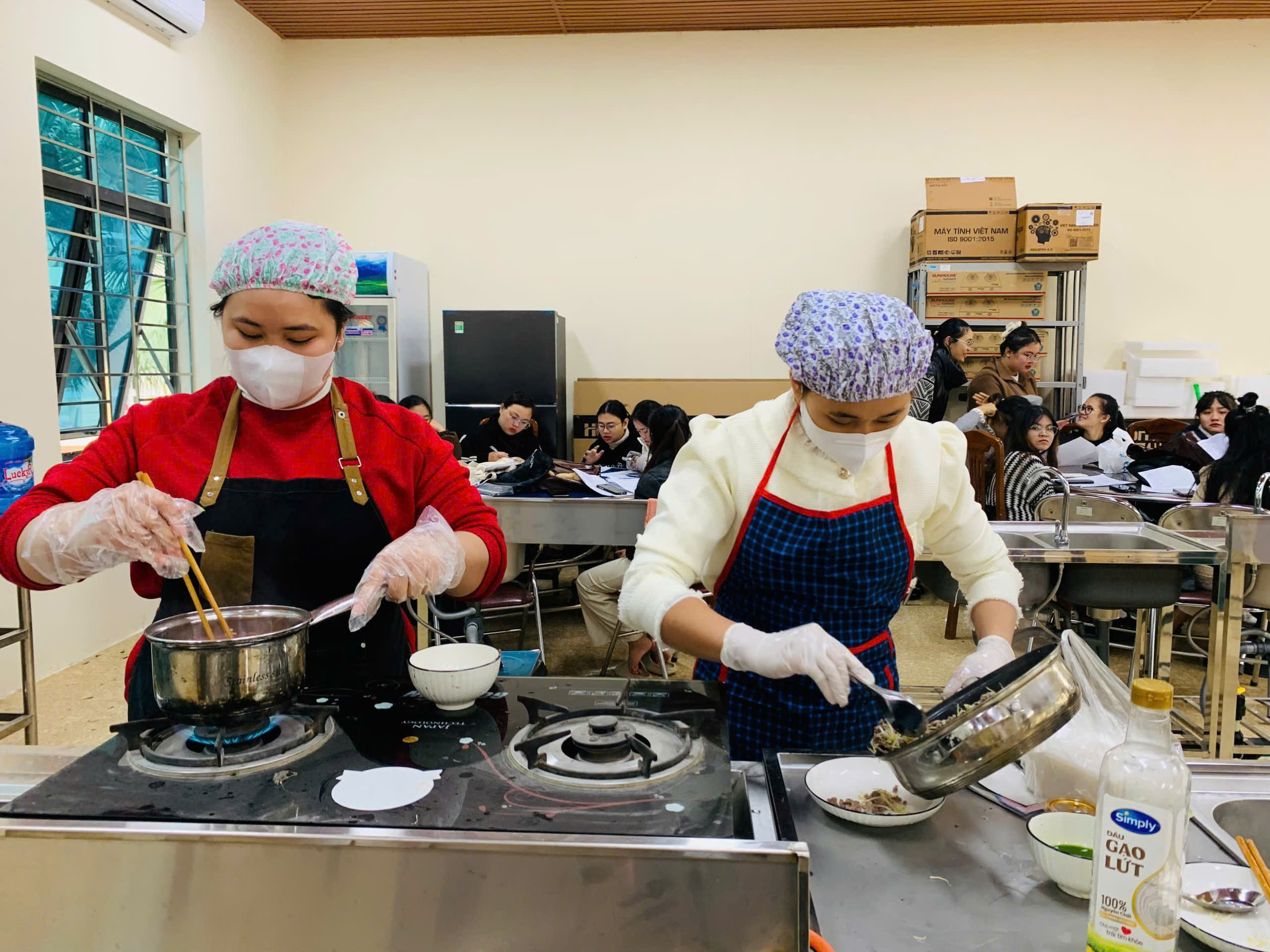 Không khí buổi học diễn ra vô cùng nghiêm túc nhưng không kém phần sôi nổi. Tiếng trao đổi về cách nêm nếm, tiếng dao thớt và niềm vui khi hoàn thành một món ăn đẹp mắt đã xóa tan sự căng thẳng, giúp sinh viên vừa học tập, vừa trải nghiệm niềm vui của nghề "nuôi dạy trẻ".